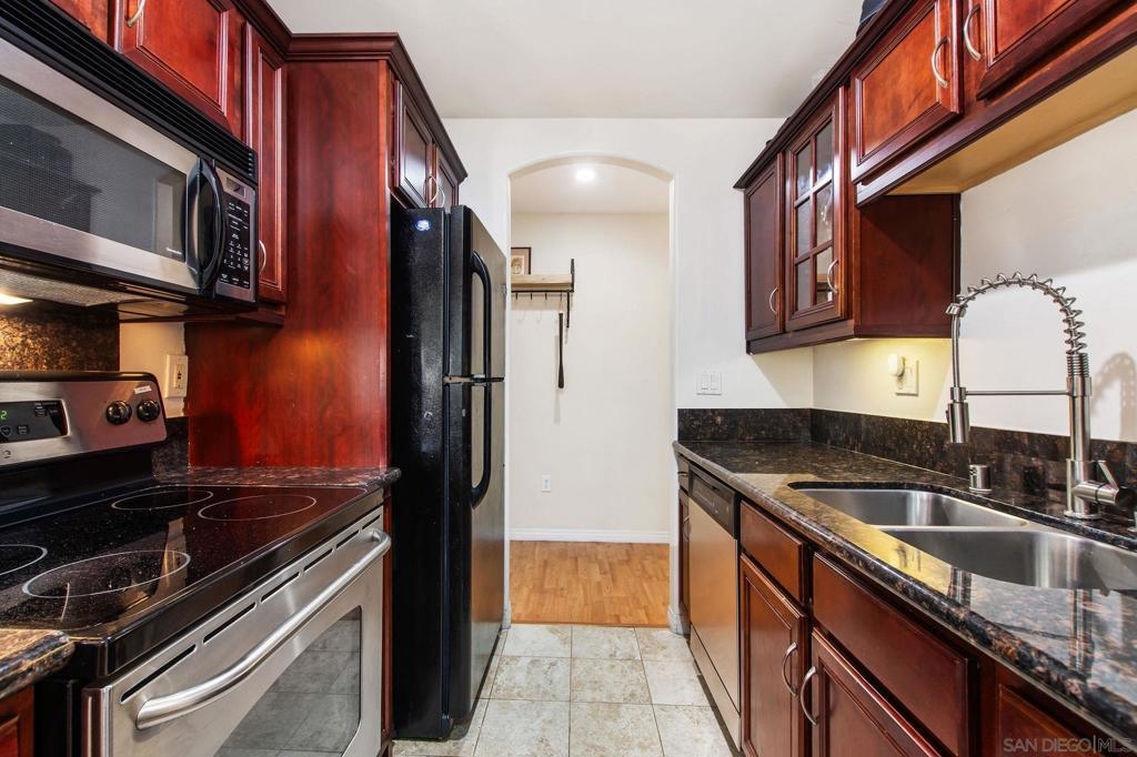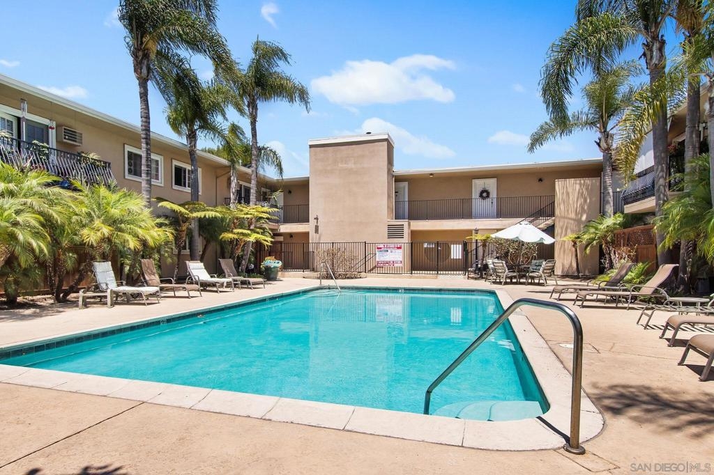 Looking for a centrally located one-bedroom condo at an affordable price? Look no further! This top-floor, exterior-facing corner unit is situated in a well-maintained, gated community north of El Cajon Blvd, just blocks from Talmadge, Kensington, and SDSU. This light and bright unit features an inviting living room with French doors that open to a private balcony, perfect for relaxing and enjoying the fresh air. The condo offers the convenience of in-home laundry. You'll also have the benefit of an assigned parking spot, ensuring your vehicle is secure and easily accessible. The community offers an array of amenities designed to enhance your lifestyle. Take a dip in the sparkling pool, stay active in the well-equipped exercise room, or host gatherings at the BBQ area. With its prime location near shops and dining, and easy freeway access, this condo is an ideal choice for those seeking both comfort and convenience in a vibrant community. Perfect as a starter home or investment property.