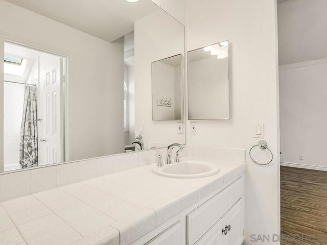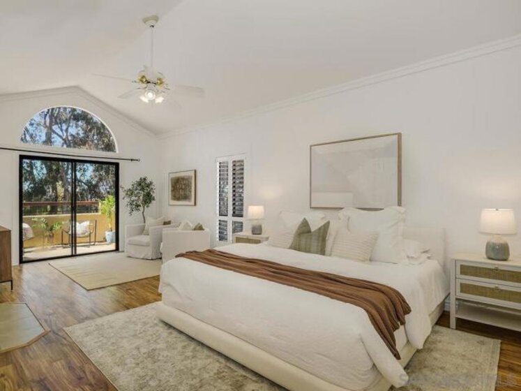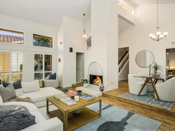 LIVE LARGE in the "Island in the Hills"! The largest model in Villa Dominique, this expansive 2513 sqft PUD is tucked back in one of the most desirable areas of Tierrasanta. Soaring ceilings greet you into the inviting Living Room with windows overlooking the serene natural setting. The generous kitchen opens to a breakfast nook and a family room, before leading you to the two downstairs bedrooms, a full bathroom, and a laundry room, as well as access to the 2-car attached garage. Upstairs, you'll find two primary suites, one with its own private balcony overlooking the surrounding natural beauty of the green space. A large, private patio with several access points within the downstairs completes the package. With only a few shared walls at the downstairs level (and no shared walls upstairs), this home feels like a free standing house! Community amenities include tennis courts and a secured overflow open parking area for add'l vehicles, boats, or RV's.