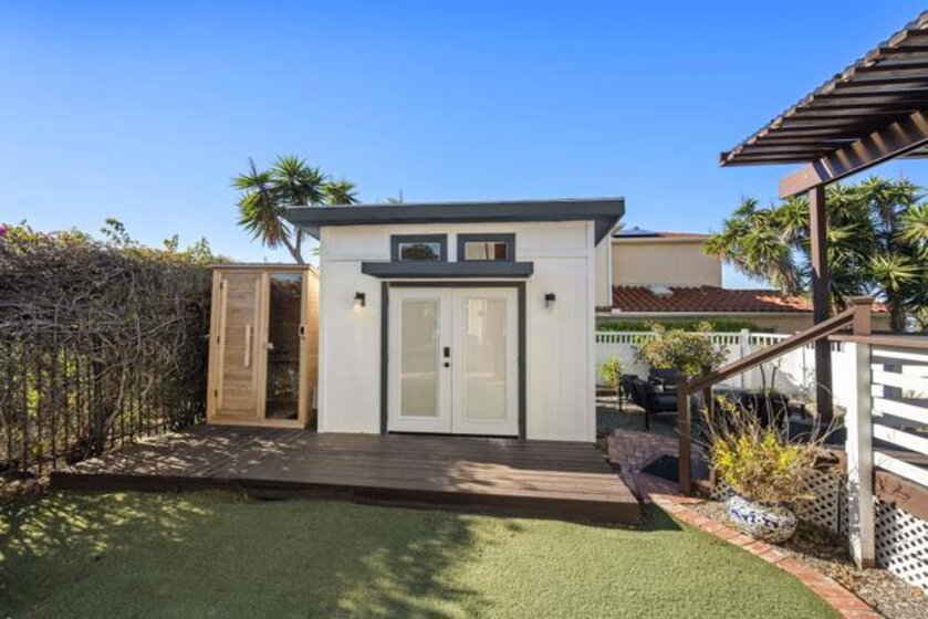Welcome to this one of a kind 2 bed, 1 bath Ocean Beach bungalow located just minutes from the sand, OB Pier, shopping and local dining. This lovingly updated home offers 840 square feet that feels bigger, plus an approx.120 sq ft finished space currently used as a gym (buyer to verify permits and intended use). Enjoy year-round comfort with central A/C, a rare upgrade in coastal homes. Light-filled with windows and three entrances - this home has the perfect airy beach vibe. Large, covered deck off kitchen provides the best of indoor/outdoor living. Ocean views from kitchen and two decks. Fully enclosed yard great for kids and pets. Alley access. Brand new roof (2024). Property also includes two single car garages and two driveways parking space providing coveted storage and parking so close to Newport. House exterior painted 2023. Insert in fireplace. Sauna & gym equipment do not convey. Welcome to this one of a kind 2 bed, 1 bath Ocean Beach bungalow located just minutes from the sand, OB Pier, shopping and local dining. This lovingly updated home offers 840 square feet that feels bigger, plus an approx.120 sq ft finished space currently used as a gym (buyer to verify permits and intended use). Enjoy year-round comfort with central A/C, a rare upgrade in coastal homes. Light-filled with windows and three entrances - this home has the perfect airy beach vibe. Large, covered deck off kitchen provides the best of indoor/outdoor living. Ocean views from kitchen and two decks. Fully enclosed yard great for kids and pets. Alley access. Brand new roof (2024). Property also includes a single car garage and a driveway parking space providing coveted storage and parking so close to Newport. House exterior painted 2023. Insert in fireplace.