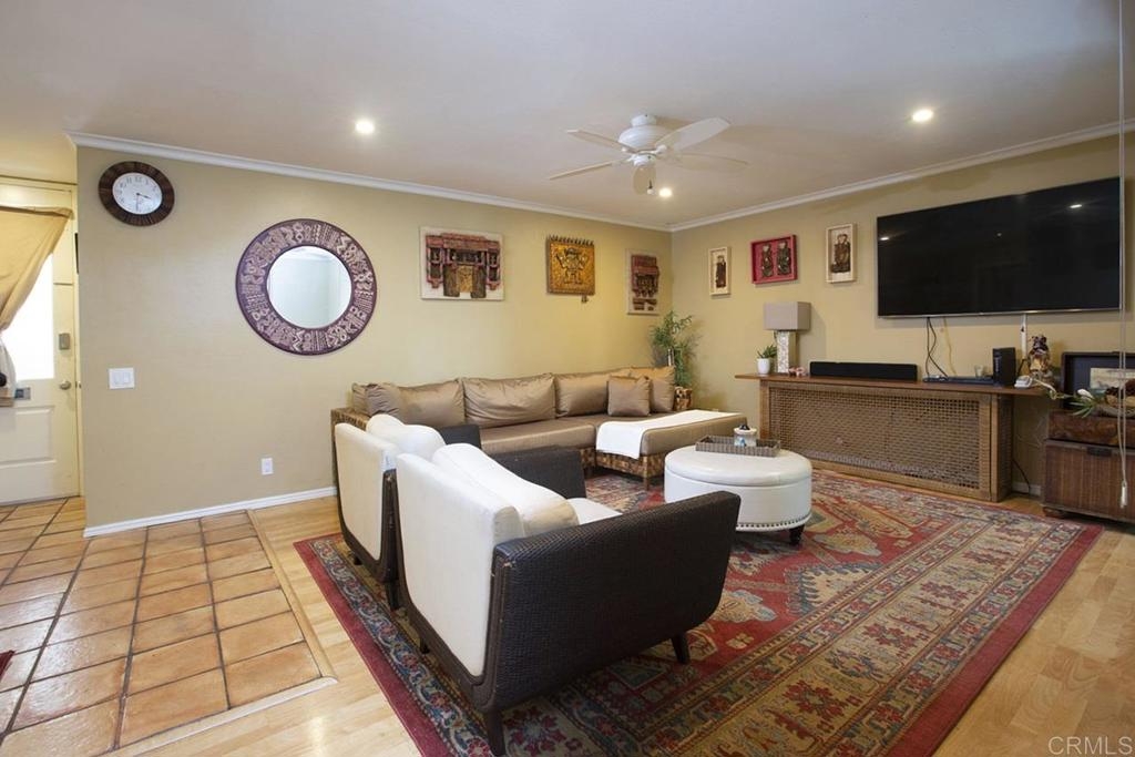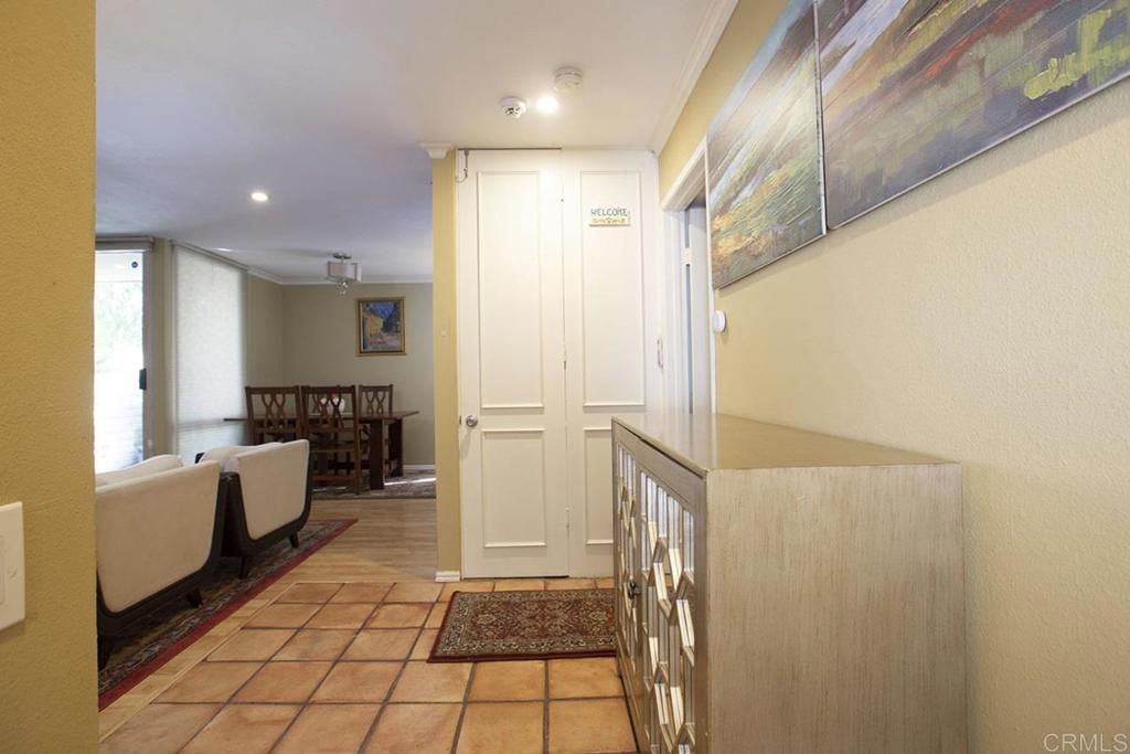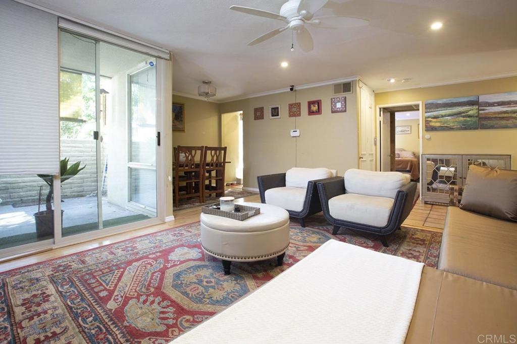Beautiful One bedroom condo located in the popular Collwood Villas. This quite gated community is centrally located near SDSU in the college area. Open floorplan featuring a large Living Room with canned lighting, crown molding and ceiling fan. New central air conditioning was recently installed! The remodeled kitchen has quartz counter tops and a pantry area. Spacious Bedroom with walk-in closet. The bathroom has been remodeled and has a large beautifully tiled shower. Relax on your private patio or enjoy the common area green spaces. Complex also has community pool area to enjoy. Covered parking space has a storage area. This would also be a great investment property close to SDSU, shopping and freeway access!