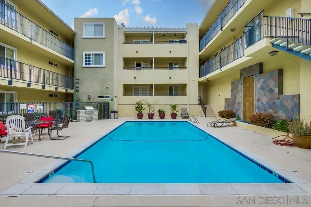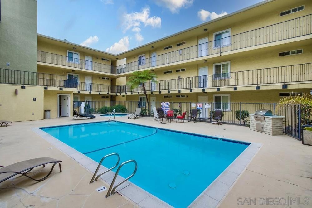 Amazing investment opportunity or starter home! This beautiful 1 bed/1 bath condo boasts a convenient location, perfect for those looking for easy access to everything San Diego has to offer and within walking distance to SDSU. The large bedroom is perfect for relaxing and unwinding after a long day, and the open-concept living area creates a warm and inviting atmosphere. This move-in ready condo comes equipped with everything you need, including one assigned parking space and an in-unit washer/dryer for ultimate convenience. On hot summer days, stay cool with the in-wall A/C unit or take a dip in the community pool. Don't miss out on the opportunity to call this property yours.