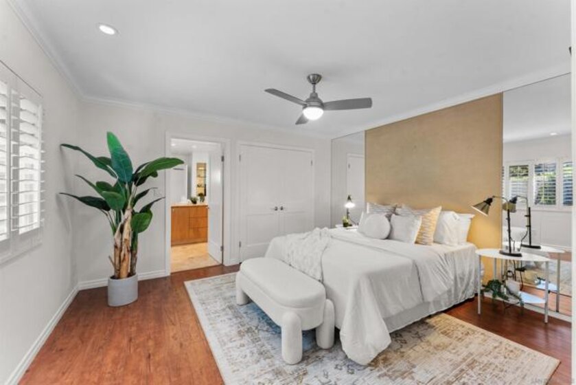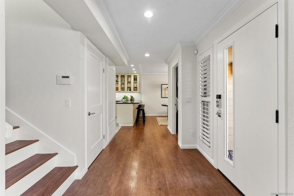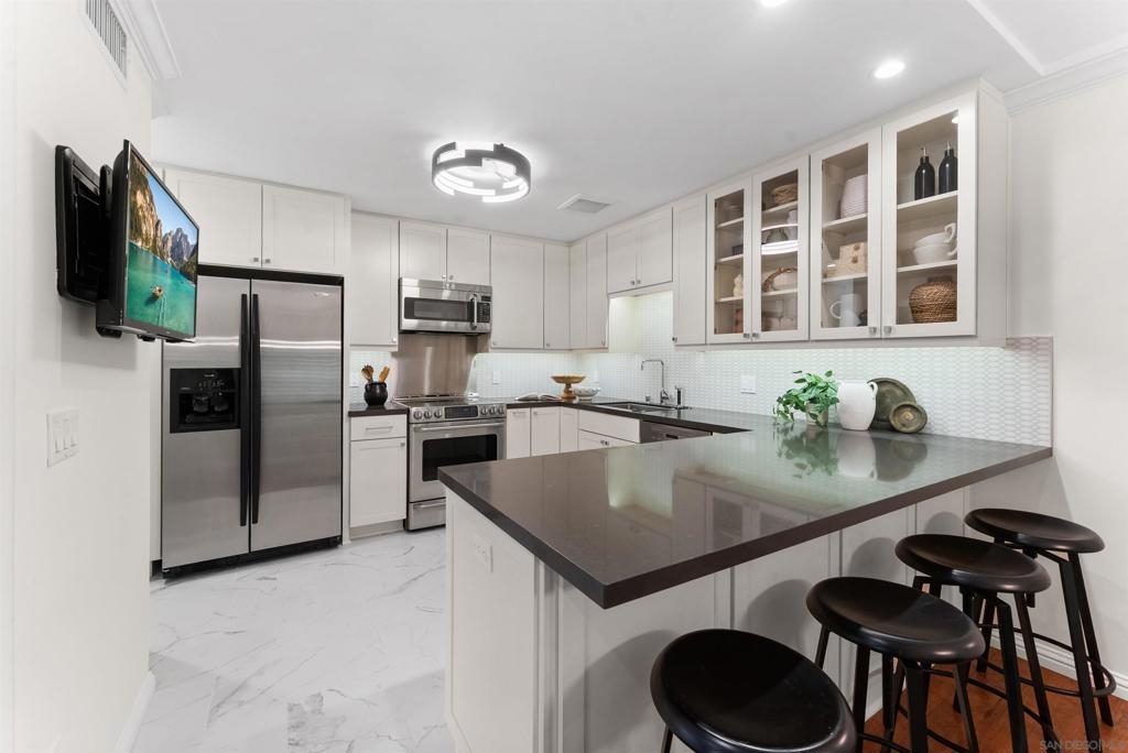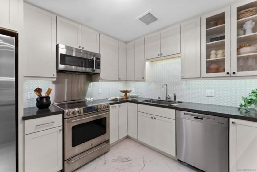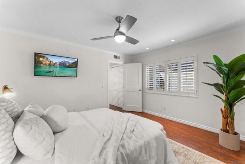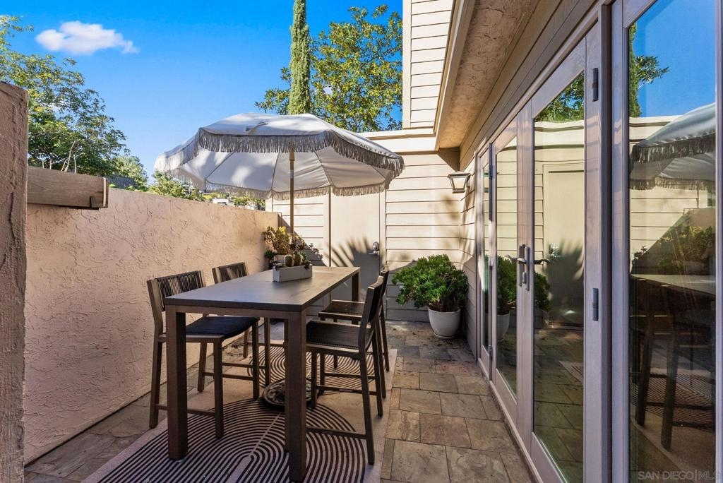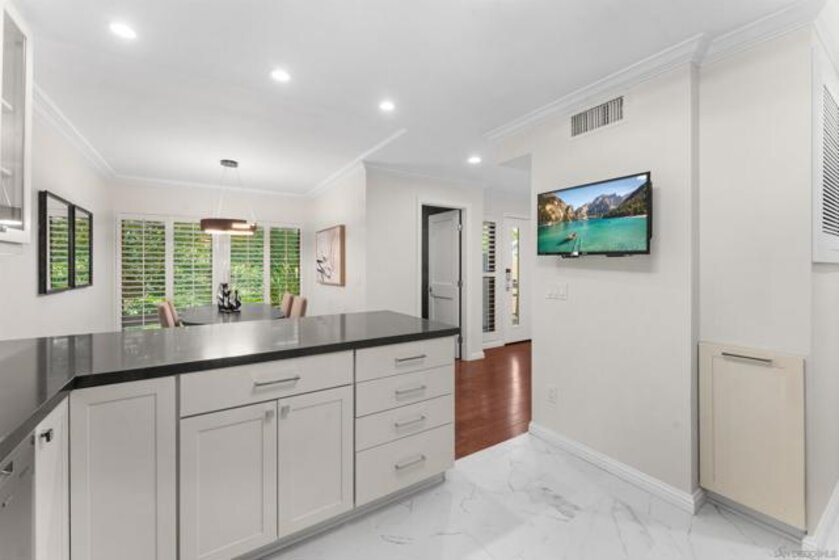 Truly one of San Diego’s best-kept secrets. Tucked within a gated, 38-acre hillside community in the foothills of Kensington, Kensington Park Villas offers a private, park-like setting that feels worlds away, yet remains centrally located. This fully turnkey residence has been thoughtfully updated throughout, featuring hard-surface flooring, fresh interior paint, and upgraded windows and doors. The living room is centered around a tiled fireplace, creating an inviting space for relaxing or entertaining. French doors open to a private patio surrounded by lush greenery, ideal for morning coffee or evening unwinding. The remodeled kitchen showcases modern cabinetry, tile flooring, and stone countertops, seamlessly flowing into the dining room. Dual primary suites offer multi-function living, separated by conveniently located laundry area with storage. Both primary suites feature updated bathrooms with custom tiled showers. Additional highlights include custom shutters throughout, central AC, ample storage, tankless water heater, detached one-car garage, and a private balcony. Set among mature trees, the community features 2 pools, 2 spas, a clubhouse, and just 145 residences with both gated vehicle access and pedestrian entry directly into Kensington. Enjoy close proximity to neighborhood shops, dining, and convenient access to I-8, I-15, I-805, and Mission Valley.