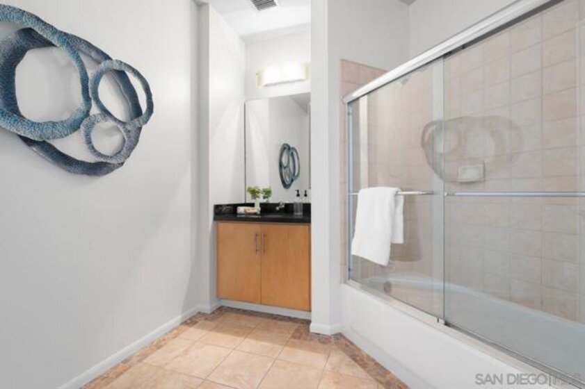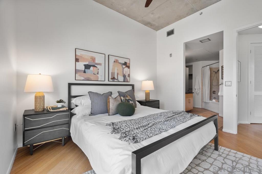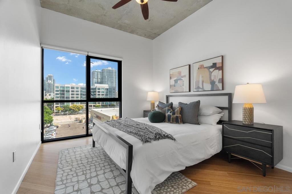 Rare corner unit with a wrap around patio in the highly desirable M2i building, located in East Village! Designed with an industrial flair, this unit features 11 foot ceilings and stunning floor-to-ceiling windows that flood the space with natural light all day long. With the potential to add an additional bedroom and the open layout, unit 503 offers flexibility for any buyer. Additional highlights include tandem parking, conveniently located on the 1st level, and a large storage unit. Residents of M2i enjoy access to a fully equipped remodeled gym, two lobbies, luscious courtyard, and a rooftop patio complete with a firepit, and BBQs. Don’t miss your chance to own this unique home in the heart of Downtown San Diego!