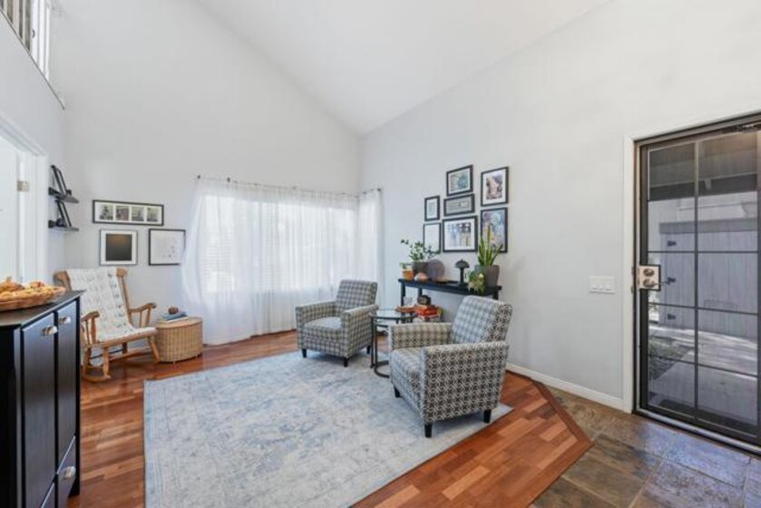 Welcome to your light-filled Tierrasanta retreat! This upgraded, south-facing home blends comfort, style, and location with vaulted ceilings, new dual-pane windows, and a freshly renovated kitchen that feels straight out of a design magazine. The open layout flows effortlessly for entertaining or quiet nights in. Two bedrooms downstairs and one upstairs create a flexible setup for families, guests, or anyone needing space. The large loft adds even more options—perfect for a home office, playroom, gym, or easily converted into a fourth bedroom. Step outside and unwind on your private patio—ideal for morning coffee, weekend BBQs, or cozy nights making s’mores around the fire pit. Sunlight pours through every corner thanks to its ideal southern exposure, creating an airy, inviting vibe throughout the day. You’ll love being minutes from everything—shopping, dining, highly rated schools, freeway access, and Tierrasanta’s scenic hiking and biking trails. Whether you’re starting a new chapter or simply ready for a home that feels like you, this one checks all the boxes. Don’t miss this rare blend of comfort, convenience, and California living at its best!