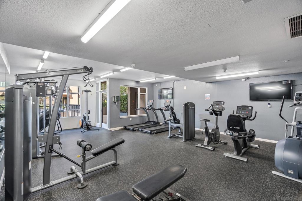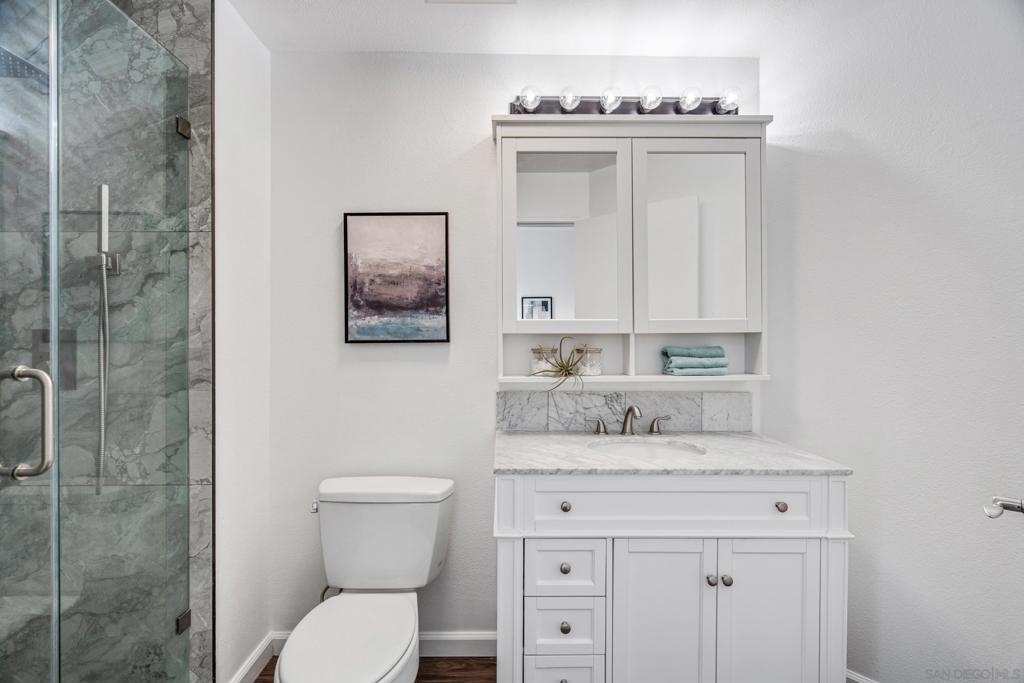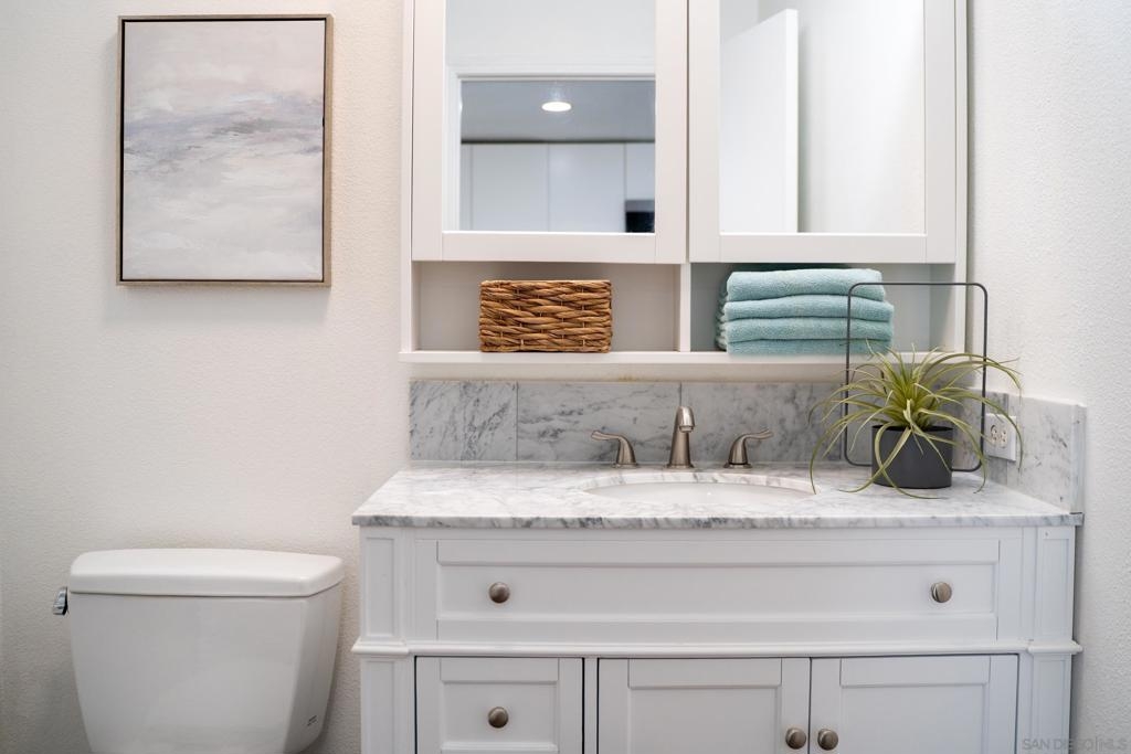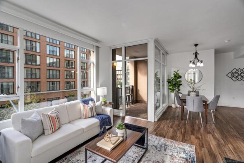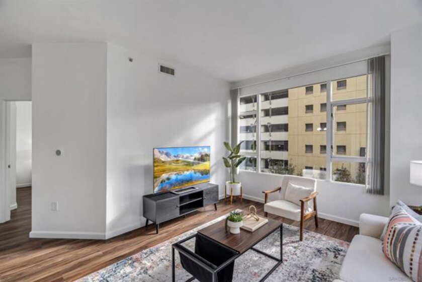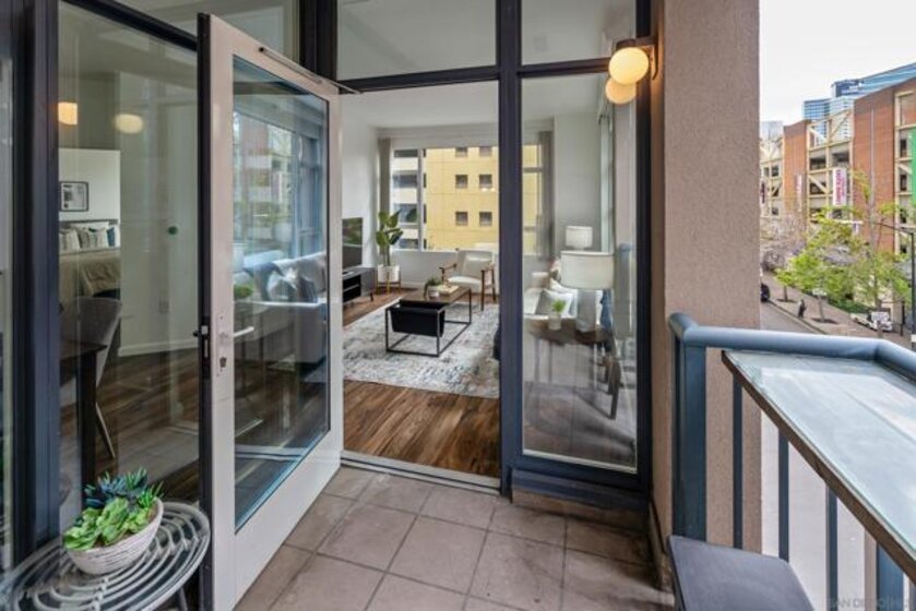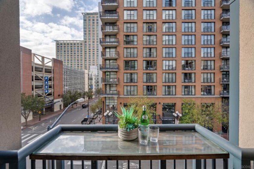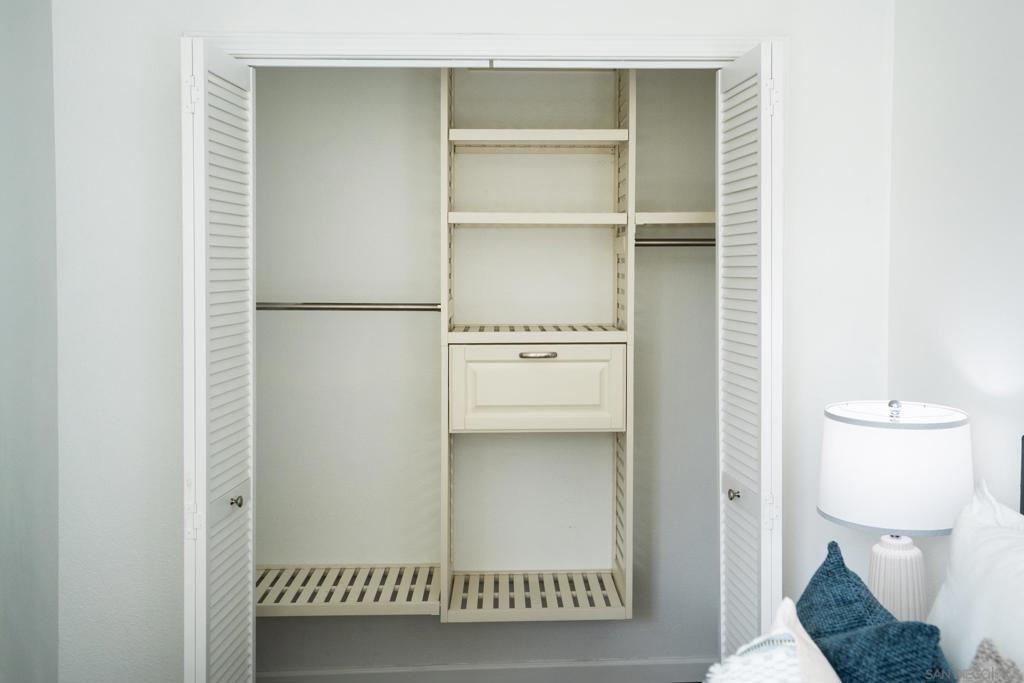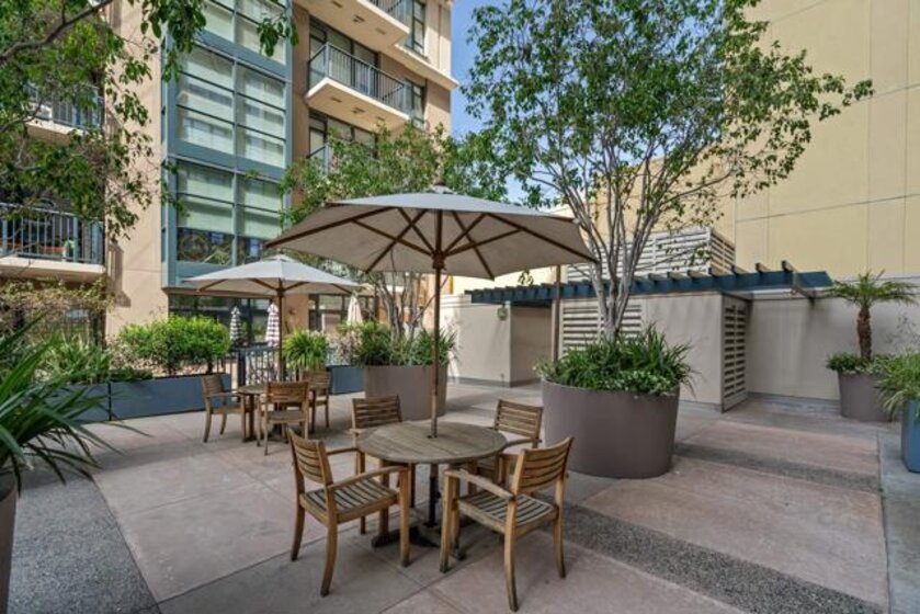 Experience a sophisticated and effortless downtown lifestyle from this perfectly positioned southeast corner residence, where abundant natural light and thoughtful design create the ideal lock-and-leave urban retreat. This exceptional two-bedroom condo with a desirable split floor plan offers both privacy and functionality while showcasing stylish, desirable upgrades throughout. Step through the entryway into an open-concept living space featuring views of Petco Park and the iconic right-field jumbotron, creating a dynamic downtown backdrop. The reimagined gourmet kitchen impresses with a newly added island and pantry, luxurious granite countertops with a full-height backsplash, and a suite of upgraded appliances, including a ZLINE range for coveted gas cooking, dishwasher, microwave hood, and refrigerator—perfect for both casual dining and effortless entertaining. The serene primary suite features custom built-in closets and a beautifully renovated bathroom showcasing large-format tile, an elegant Carrera marble vanity, and an oversized mirrored medicine cabinet. The guest bathroom has also been fully remodeled, offering matching finishes and contemporary design. Additional highlights include luxury vinyl flooring throughout, designer paint, custom built-in closets in both bedrooms, two hallway closets with integrated shelving, and a thoughtfully designed layout that maximizes both comfort and livability. Modern urban comforts include in-unit laundry and two side-by-side parking spaces, providing both convenience and functionality. Trellis is a VA-approved community offering exceptional amenities, including weekend evening security, a fully equipped fitness center, rooftop BBQ terraces on the second floor, an interior courtyard seating with a tranquil water feature, Amazon package lockers, a community information display, and a sleek modern lobby entrance. Residents enjoy a prime downtown location close to Petco Park, Gallagher Square, the historic Gaslamp Quarter archway, renowned dining and shopping, bus and trolley transportation, the new Children’s and Dog Park, and the Harbor Drive Pedestrian Bridge, which connects to The Rady Shell, the Convention Center, Seaport Village, Embarcadero Parks, the Coronado Ferry Landing, and San Diego Bay. The very best of the city is just moments from home.