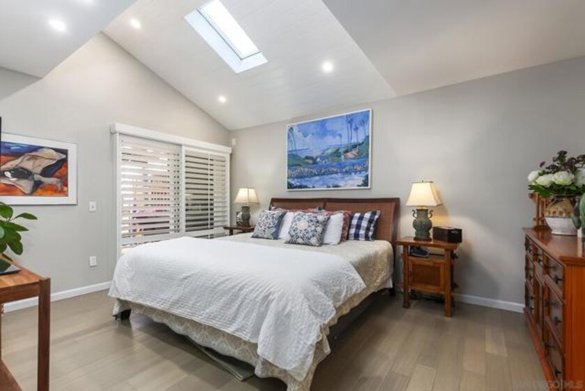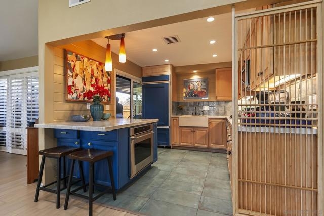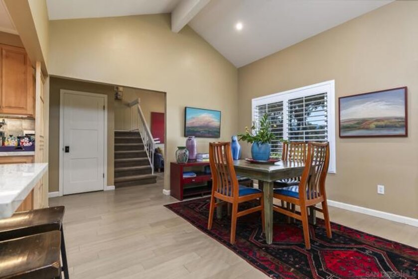 Conveniently located for commuters, this beautifully remodeled 3 bedroom, 2 bath end-unit townhome. Primary on the main level.Highly sought-after Villa Monterey community offers both accessibility & serenity. The surprisingly quiet interior benefits from upgraded dual-pane windows that minimize outside noise and create a peaceful retreat. Beautiful canyon views are right outside your windows. The custom patio deck is in a category of its own made from environmentally friendly engineered bamboo. The living area, kitchen, and primary bedroom each open through plantation shutters which are throughout the home. Step inside to discover bright, cheerful spaces ready for your personal touch. The open-concept floor plan, 36-inch wide doorway to the first-floor primary suite and bathroom, and spacious layout ensure easy accessibility throughout. The custom kitchen is a standout, featuring natural stone counters, updated lighting, and premium appliances: Viking gas cooktop, Dacor electric oven, Bosch dishwasher, travertine farm sink, built-in KitchenAid refrigerator, microwave, and pot filler — all framed by elegant Taj Mahal quartzite countertops. The primary suite offers vaulted ceilings, a skylight for stargazing, and a walk-in closet. Both bathrooms have been fully remodeled with marble, granite, subway tile, and custom glass doors. Additional highlights include a separate den or office, full-size laundry/utility room, newer interior doors, recessed lighting. A two-car detached garage provides abundant storage, and the community even offers on-site RV parking for $100 per month!