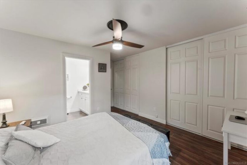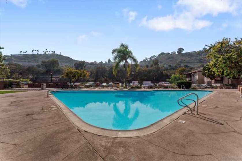 Welcome to this beautifully updated first-floor condo, featuring 1,144 sq. ft. of bright, open living space with luxury vinyl plank flooring throughout and tiled bathrooms with quartz counters and stylish backsplash. The kitchen is perfect for any home chef, with a new stainless-steel refrigerator, electric range, dishwasher, and Osmosis water filter, plus a convenient in-unit washer/dryer combo. Enjoy your spacious patio overlooking a lush green canyon, perfect for morning coffee or evening relaxation, and feel secure with outdoor security cameras included in the sale. One assigned parking spot comes standard, with the option for a second via HOA application, and a wall-mounted A/C system keeps the home comfortable year-round. Residents love the community pool, spa, and clubhouse all just minutes from SDSU, trolley stations, trails, shopping, and restaurants. This turnkey condo is ready for you to move in and start enjoying the Del Cerro lifestyle today!