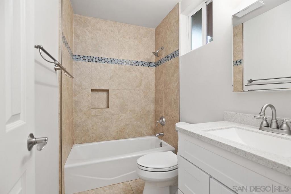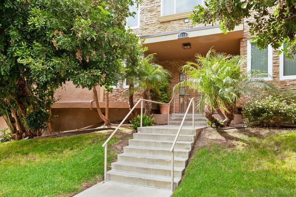 Light and bright unit in gated community with pool; bathroom recently remodeled with all new top of the line fixtures and custom tile; washer/dryer in unit; newer engineered hardwood floor throughout; newer dishwasher; granite countertops; ceiling fans in both bedrooms and dining area. Additional storage in basement; water included in HOA fees; one reserved parking spot #61. Quiet neighborhood at the end of a cul-de-sac, walking distance to shops and restaurants. Close to SDSU and all that the college area has to offer; FHA approved, see pdf attached Across the street on the 5511 Adelaide side of the complex. To the left of the complex, there is a gate through the alleyway (use common area key to unlock). The pool gate is on your left (use common area key to unlock). Complex Features: , Equipment: Dryer, Range/Oven, Washer Sewer: Sewer Connected Topography: LL,GSL