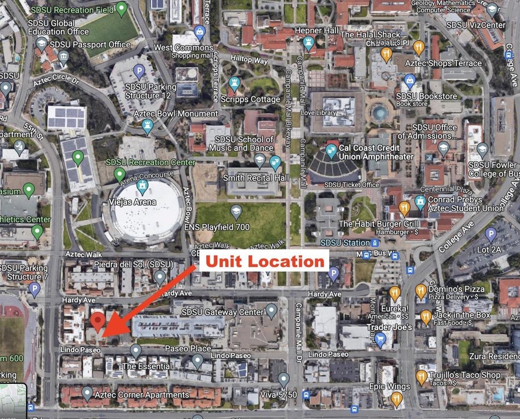 Welcome to SDSU! This wonderful top floor corner unit is a perfect investment property or great starter unit for the first time home buyer. Nice quaint complex of 21 units almost directly on the SDSU campus. The unit features stainless steel appliances, granite counters, dual pane windows and upgraded cabinetry. Great layout with a spacious living room with plenty of natural light and two generous sized bedroom and 2 full bathrooms. The primary bedroom has an en-suite restroom and walk-in-closet. The property also features underground parking for 2 cars (tandem).