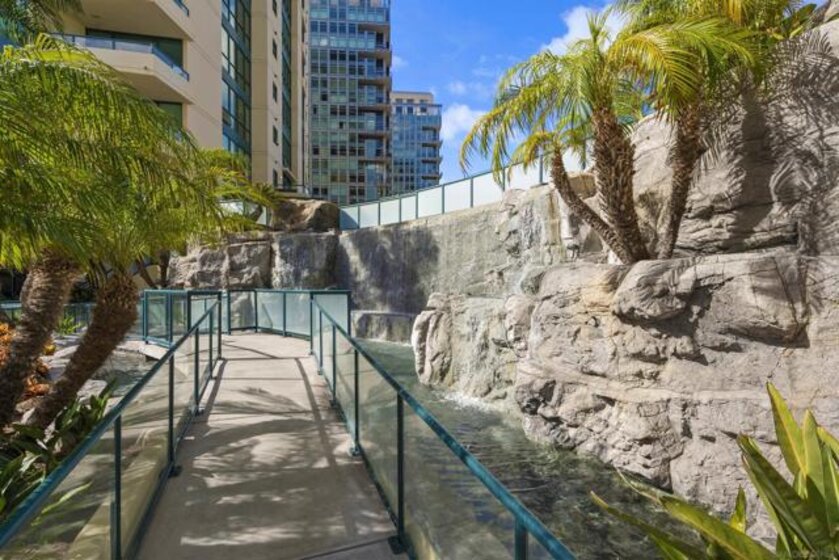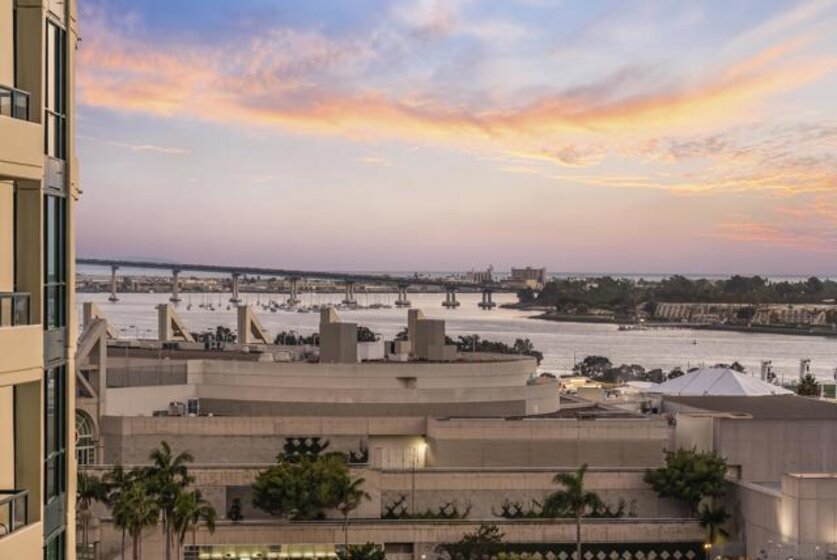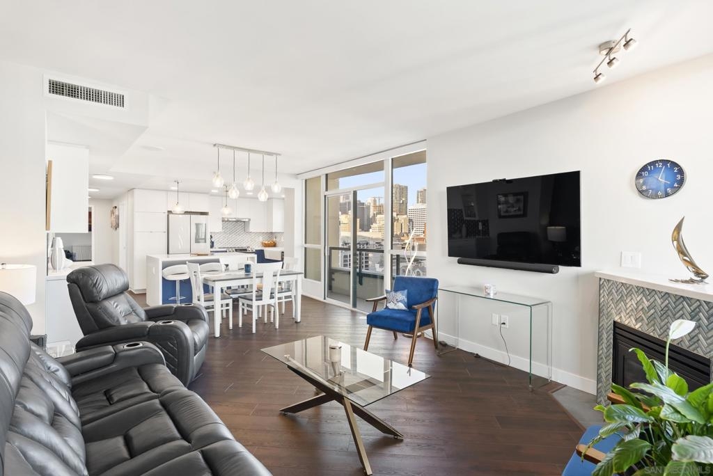 Sweeping panoramic Bay and City skyline views define this beautifully remodeled Marina District residence. This spacious 2-bedroom, 2-bath home offers two private patios perfectly positioned to capture stunning water views and seamless indoor-outdoor living. Over $200,000 in premium upgrades completed in 2023 include custom cabinetry with expanded storage, continuous flooring throughout, and updated lighting and plumbing fixtures. The redesigned kitchen features quartz countertops, designer tile, a generous pantry, and high-end smart appliances, including an Alexa-enabled refrigerator and smart oven. Additional highlights include a custom walk-in closet, fireplace, blackout shades, Wi-Fi/Bluetooth color-changing ceiling lights, and two secured parking spaces, each with its own EV charger. A rare opportunity to enjoy Downtown San Diego living in the heart of the Marina District. Ideally located in the heart of the Marina District, Horizons offers an unbeatable downtown lifestyle just steps from the New Children’s Museum, Martin Luther King Jr. Promenade, Seaport Village, Petco Park, the Gaslamp Quarter, San Diego Bay, and the Marina. A children’s park and dog park are located directly behind the community. Resort-style amenities include a pool, spa, BBQ area, fitness center, concierge, security, billiard room, conference and club rooms, and 16 guest parking spaces. Everyday convenience is built in with retailers just an elevator ride away, including a bank, dry cleaner, Postal Annex, coffee shop, and more. The building has been refreshed with beautifully remodeled lobbies, upgraded hallways, and new unit doors with keypad access, all within walking distance to transit, dining, shopping, and Ralphs Signature Market.