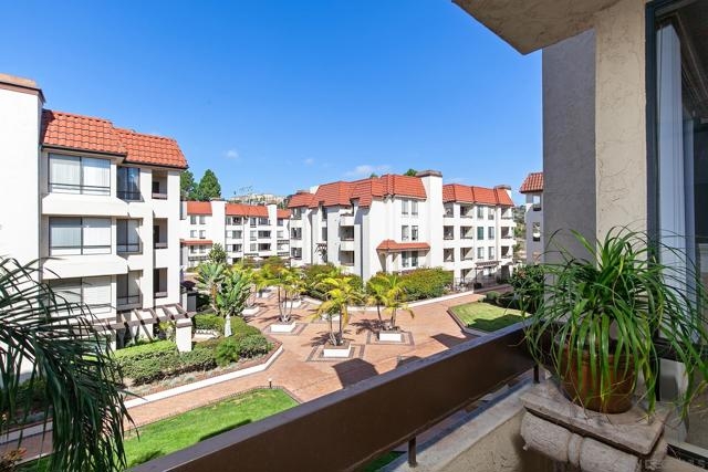 BEST DEAL at The Courtyards- Guard/Gated Resort Living at the West End of Mission Valley! Spacious 1 Bed/1.5 Bath Condo offers Easy Living with an Ideal Lock & Go Lifestyle! Direct Courtyard Facing Location with Covered Balcony, Gas Fireplace, 9ft Ceilings, Central A/C & Heat (New in '24), Brand New Carpet, Neutral Tile in Kitchen & Baths, In-Unit Laundry, Large Cook's Kitchen with Deep Single Bowl Sink & Stainless Appliances! Complex Amenities include Pools, Spas, Tennis, Saunas, Racquetball, Exercise Room & Beautiful Grounds! Enjoy Coastal Breezes from this Highly Desired Central Location- Minutes to Mission Bay, Fashion Valley, USD & Mission Valley YMCA!