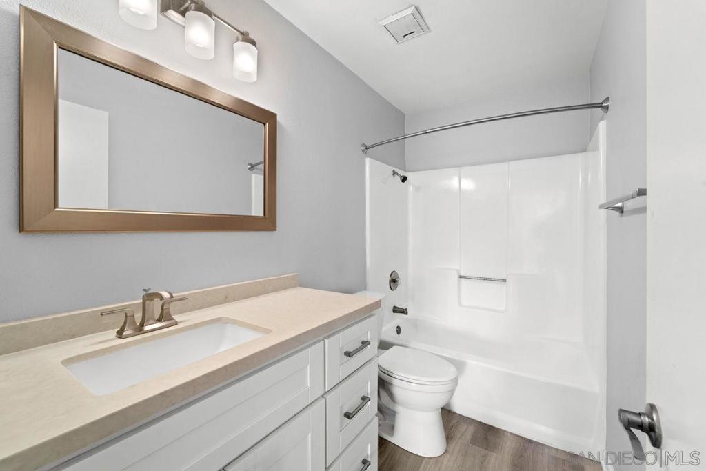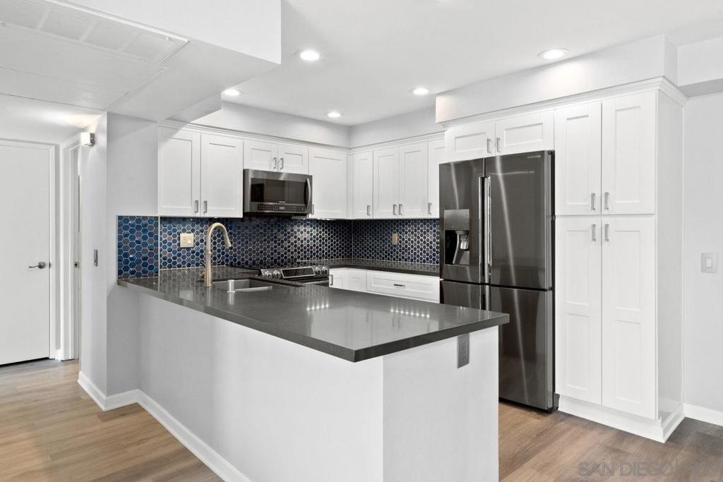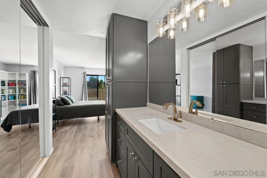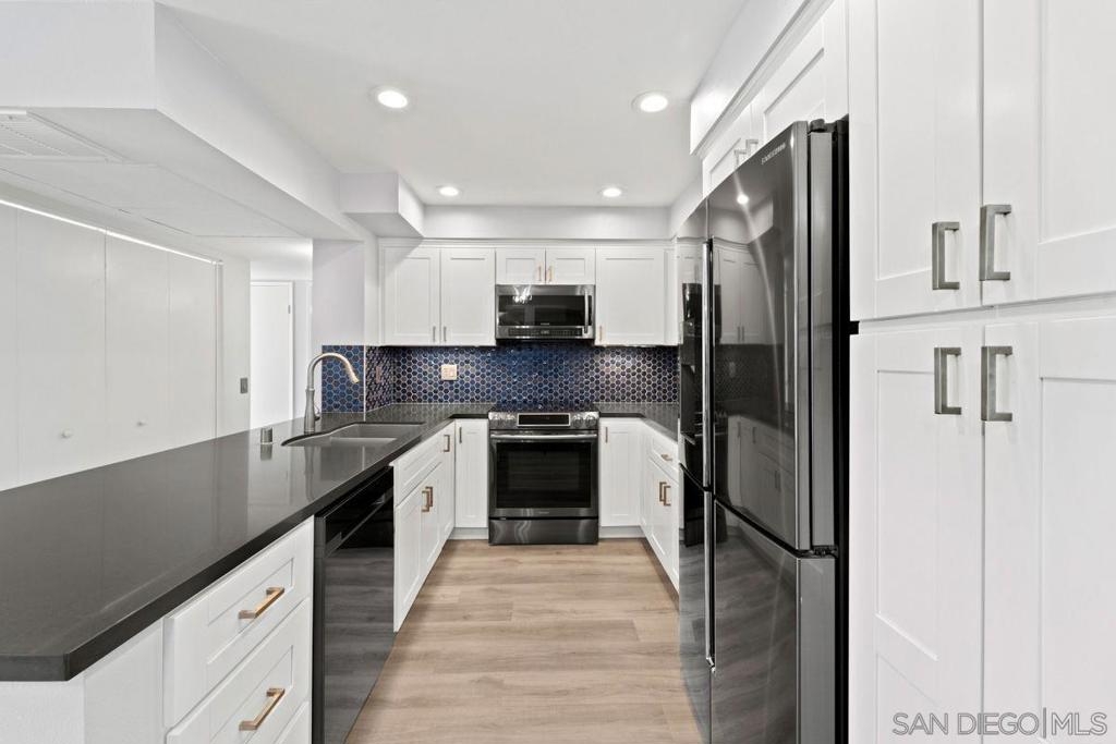 TURN-KEY, fully-remodeled & spacious 2/2 in El Cerrito! Split layout with bedrooms & bathrooms on opposite sides of living area with Primary bedroom featuring en-suite. Designer-styled upgrades floor-to-ceiling with LVP floors, black stone quartz countertops, backsplash, black stainless Samsung appliances & more. Built-in shelving in living area; light paint & LED lighting keeps unit feeling bright! In-unit full-sized laundry closet. Gated community features a poolSuper-central location with 84 walk score. Walk to dining, shopping & transit. Short drive to SDSU, hiking trails, I-8 & I-94. Complex is VA approved.