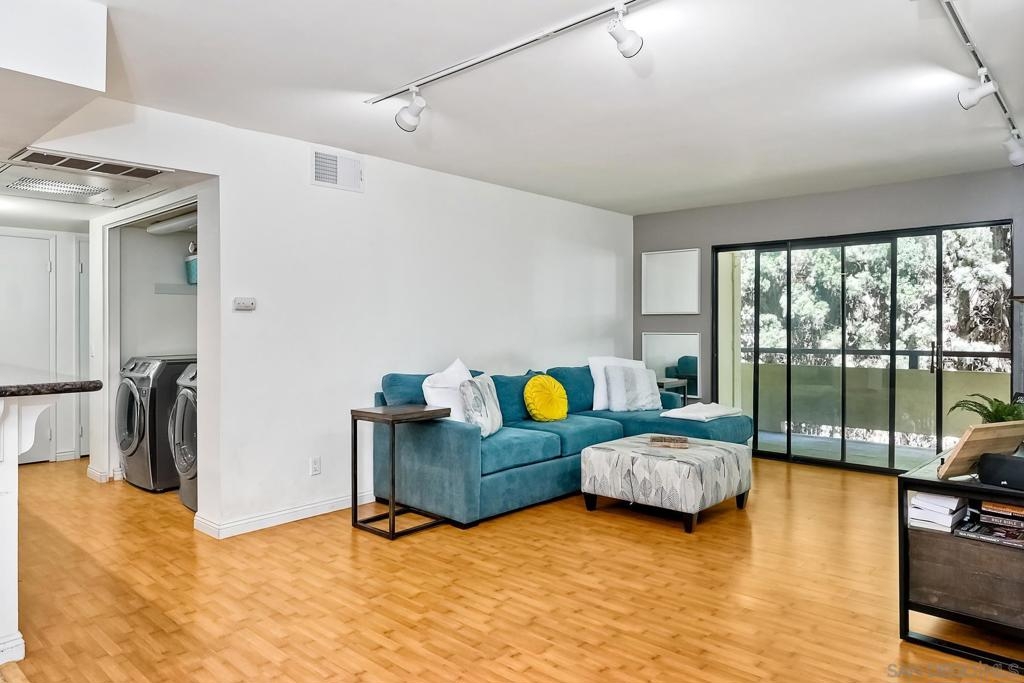 COLLEGE AREA. Perfect for a roommate situation w/ 2 bedrooms and bathrooms completely separated from each other by the open concept living area. This nicely remodeled beauty has an in-unit laundry, central heating & a/c, bamboo floors & a rare, private-seating balcony! All appliances are in "like new" condition and will remain. Besides having gated parking there is also a separate visitor parking lot. The unit is accessible via just 2 steps to the elevator and the walkability to shops & restaurants is a real bonus. LOOK NO FURTHER! VA Approved!! Equipment: Dryer,Pool/Spa/Equipment, Washer Sewer: Sewer Connected Topography: LL
