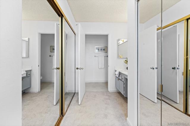 Welcome home to this bright and stylish 2-bed, 2-bath condo on the top (4th) floor, offering vaulted ceilings, abundant natural light, and no neighbors above you for added privacy and quiet. Enjoy freshly painted designer cabinets, updated fixtures, wood-style flooring, new carpet in bedrooms and tile in kitchen and bathrooms, plus in-unit laundry and extra balcony storage. The spacious primary suite features high ceilings, double closets, and a generous vanity. **Newer Heater & AC system** (installed 2023) and **secure gated parking**. The building exterior is currently undergoing renovation, adding fresh curb appeal and long-term value to the property. Anticipated completion by the end of 2025. Conveniently located near SDSU, freeways, shopping, and dining, just 20 minutes to the beach, downtown, and naval bases. Perfect for first-time buyers, military families, students, professionals, or investors seeking a move-in-ready home in a quiet, improving community.