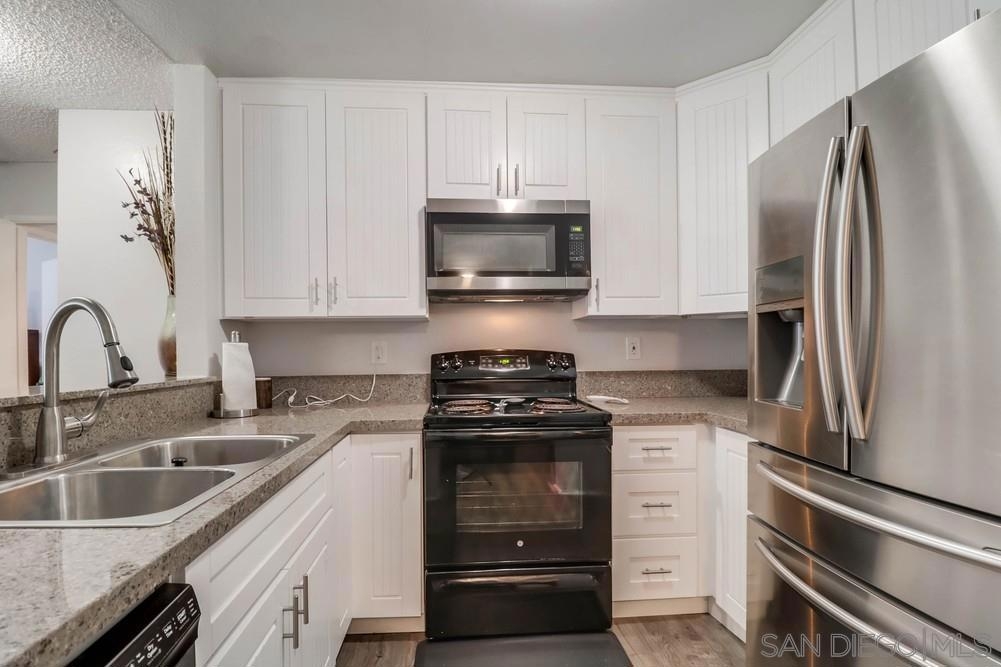 Simply put this is a rare opportunity! This top floor unit boast cathedral ceilings, dual master bedroom, granite counter tops, laminate flooring, opposite end bedrooms each with their own beautiful bathrooms and custom tiled finishes, stainless steel appliances, and to top it the seller will entertain selling it fully furnished. Enjoy no one above you + a balcony to walk out to makes for peaceful living. Minutes from SDSU, Downtown SD, Mission Valley and Fashion Valley shopping center, and a wide variety of restaurants makes this location just perfect. The complex is in a nice, quiet, secluded area on the top of a hill that boasts beautiful views.