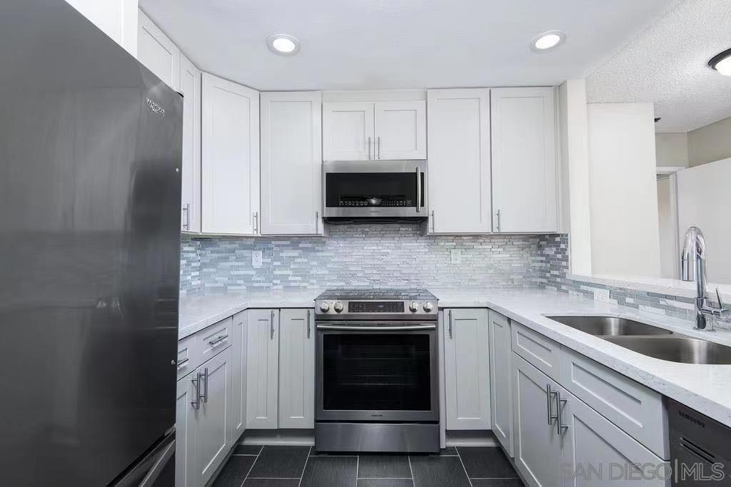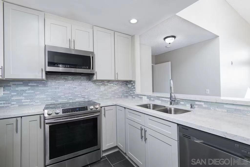Renovated and ready to move in 2Bedrooms and 2 full bath Condo on the top floor with vaulted ceiling and at the corner spot with a private balcony. All newer appliances with stackable Washer/Dryer ready as your new home. Close to all including shops, restaurants and minutes from SDSU campus.