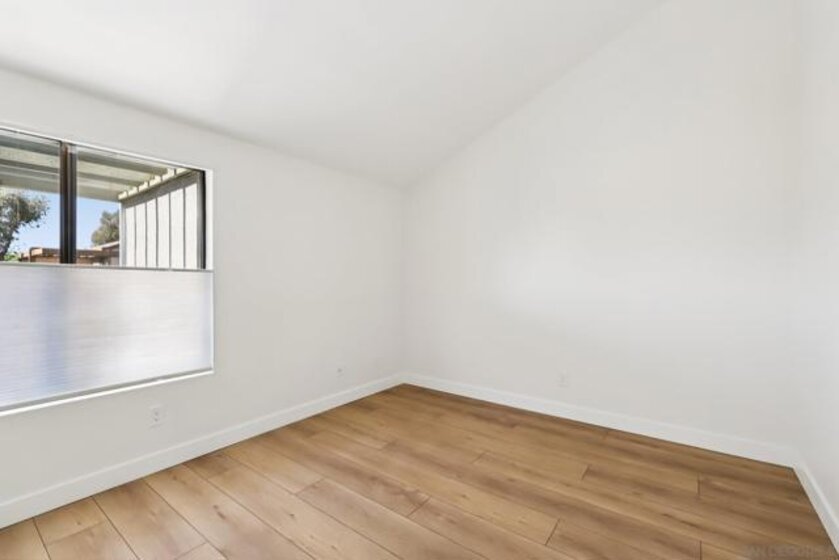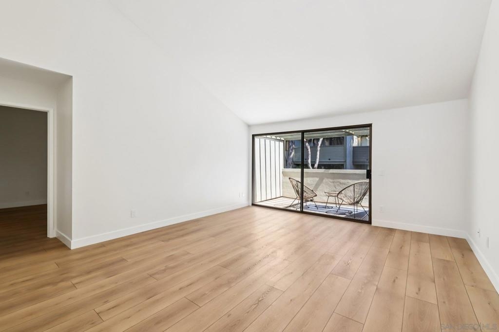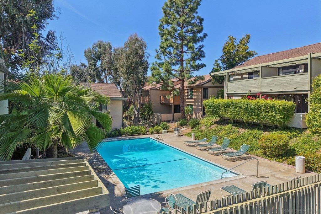 Top-floor condo in desirable University City featuring vaulted ceilings and abundant natural light. This beautifully updated home offers a bright, open layout with spacious living areas and modern finishes throughout. Recent upgrades include COREtec flooring, quartz kitchen countertops, refreshed cabinetry with updated hardware, fresh interior paint, brand-new appliances, window treatments in the bedrooms, and a new garage opener with smart MyQ access for convenient app control. Rare for the community, the unit includes in-unit laundry hookups, offering added flexibility and convenience. The home also features a private one car garage with storage cabinets, an additional assigned parking space (#186), a guest parking pass, along with ample parking on Agee St. The HOA provides excellent value, covering water (including hot water), trash, sewer, three pools, common area laundry, landscaping, exterior electrical, termite coverage, exterior maintenance, and roof. Conveniently located near UCSD, top hospitals, shopping, dining, and within walking distance to the elementary school. Easy access to freeways, public transportation, Westfield UTC Mall, La Jolla, and surrounding beaches. Enjoy convenient access just next door to a grocery store, coffee shops, restaurants, dry cleaners, nail salon, barbershop, and urgent care. A great opportunity in a highly sought-after location for first-time buyers, investors, or anyone seeking a well-located, move-in ready home.