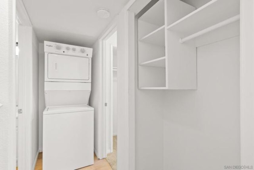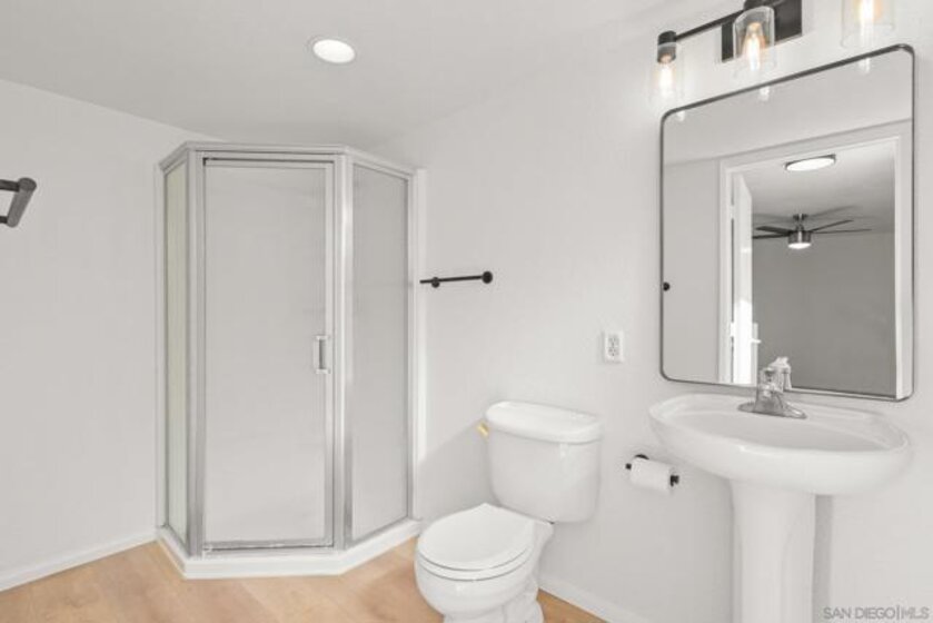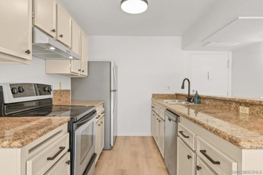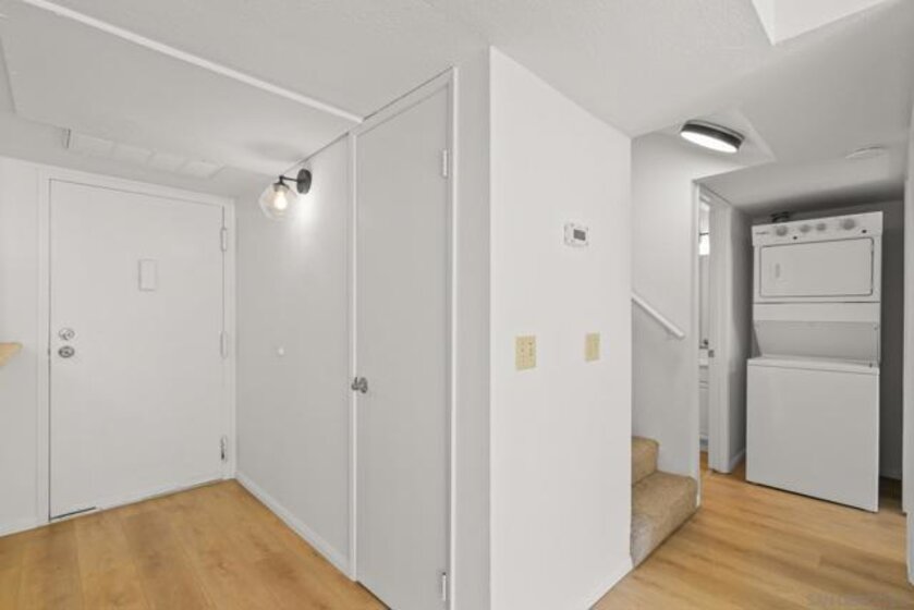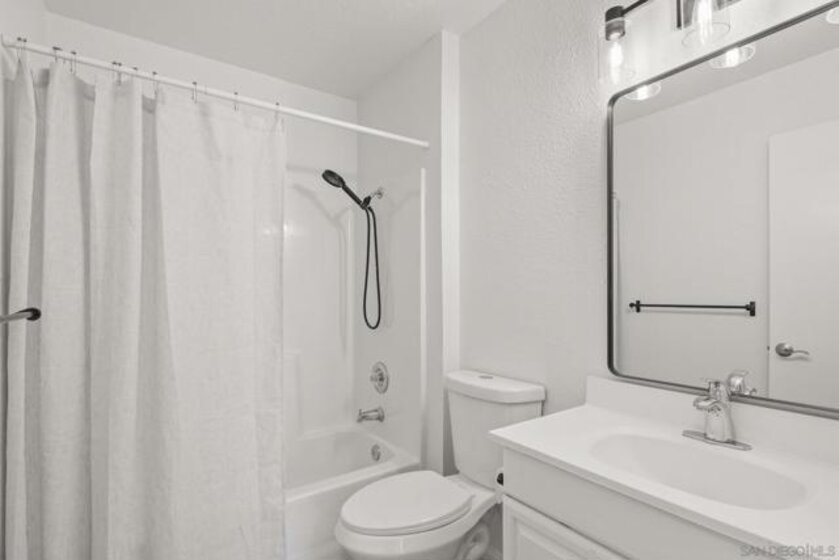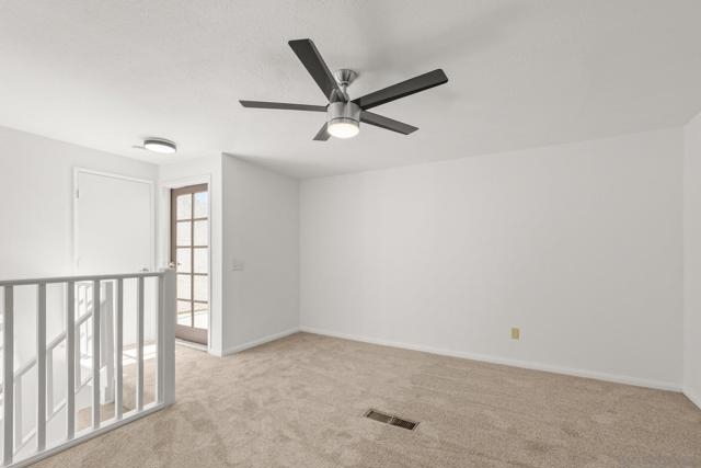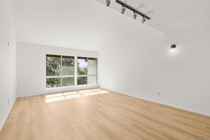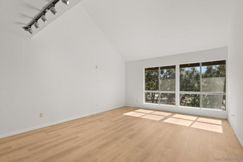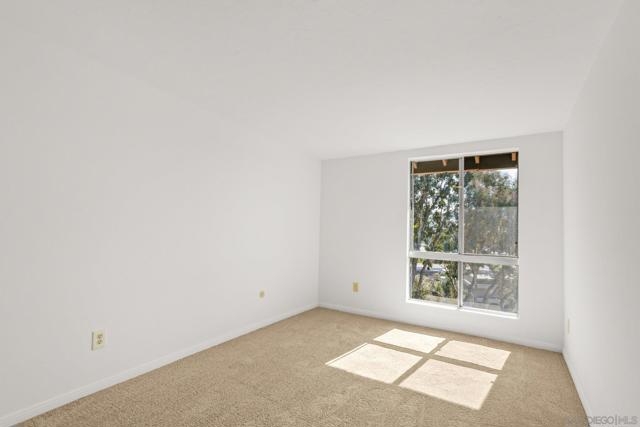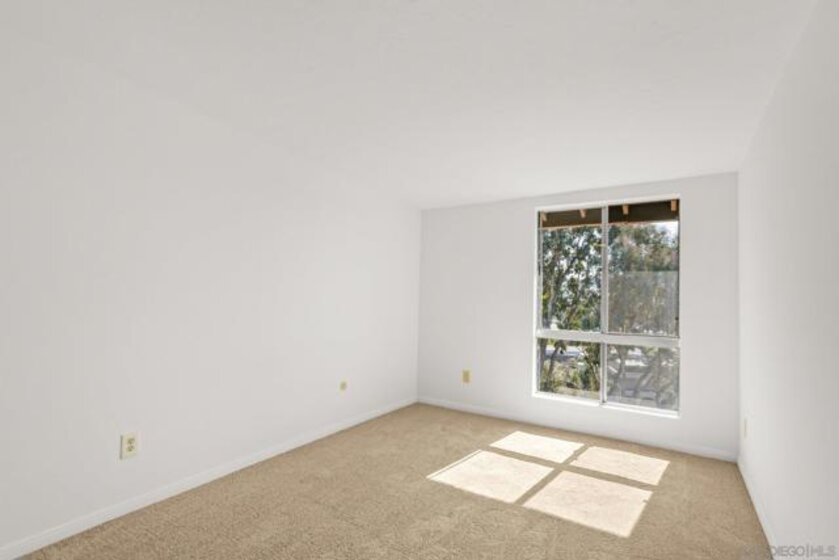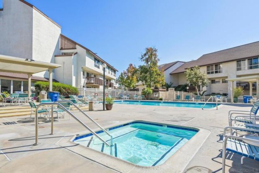 Move-in ready 2 bedroom, 2 bathroom condo in an excellent central San Diego location! Welcome home to this updated Mission Verde residence in Mission Valley. The open and airy layout features one bedroom downstairs and a loft-like bedroom with en-suite bathroom upstairs. The main living space features large, south facing windows and soaring ceilings, allowing for wonderful natural lights and fresh breezes. Recently updated with beautiful luxury vinyl flooring and new lighting fixtures, plus fresh paint throughout and new carpeting in the bedrooms. Enjoy a spacious private view patio off of the upstairs suite, perfect for creating a sophisticated outdoor lounge, garden area, dining space or more! Add in the close-by shopping centers, dining options, proximity to SnapDragon Stadium, and multiple freeway options, and you're set up for easy living and commuting from the center of San Diego. Complex amenities include a large outdoor pool with plenty of lounging options and BBQ areas, plus a spa, tennis court and full size outdoor basketball court. In-unit laundry, one assigned covered parking space and a storage unit (both located close to the elevator) are included, with additional parking pass options available from the HOA.
