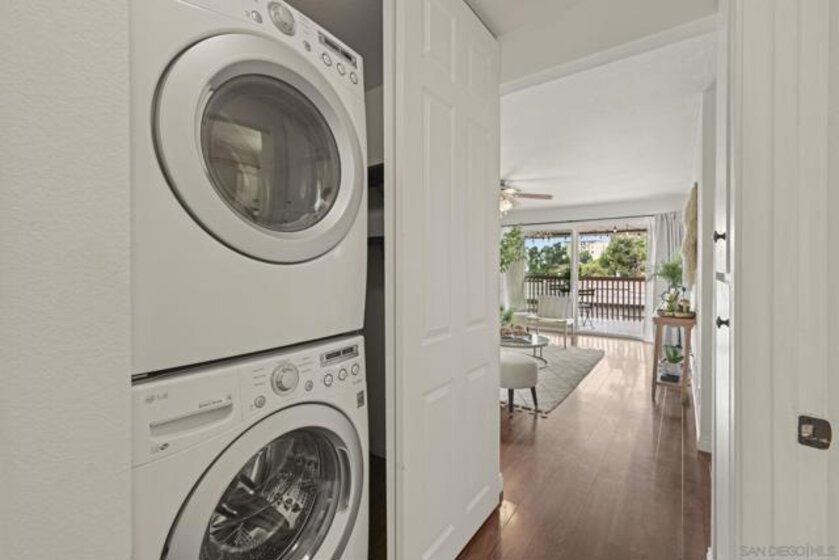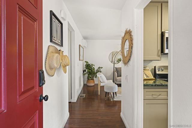 THE ONE THAT CHECKS ALL THE BOXES! This bright end-unit townhome checks all the boxes, FHA & VA approved, private setting, and gorgeous open views. Enjoy rare greenbelt privacy with no neighbors behind you, a feature that truly sets this home apart in Friars Village! Unlike most units with two shared walls, this one shares only a single wall, offering an exceptional sense of space and quiet. Inside, the 2 bed / 1 bath layout feels airy and inviting with dual-pane windows and sliders (updated within the last 5–6 years) and three energy-efficient mini-splits providing year-round comfort. The open-concept living area flows seamlessly to a private view patio, perfect for relaxing or entertaining with serene greenery as your backdrop. Practical perks include in-unit laundry, an attached two-car garage with direct access, and a low-maintenance lifestyle ideal for busy professionals, students, or first-time buyers. Community amenities feature a pool, spa, clubhouse, BBQ areas, and playground, all in a prime Mission Valley location just minutes from USD, Fashion Valley, Mission Bay, and Downtown, low-maintenance living with unmatched privacy, comfort, and convenience that truly stands out from the rest. Seller-reported updates include a new electrical panel (2025), new garbage disposal, added kitchen backsplash, new kitchen faucet, a painted bathroom vanity with new hardware, new bathroom light fixtures, a new medicine-cabinet mirror, new hallway light fixtures, storage racks installed in the crawl space, and a wooden surf rack in the garage.