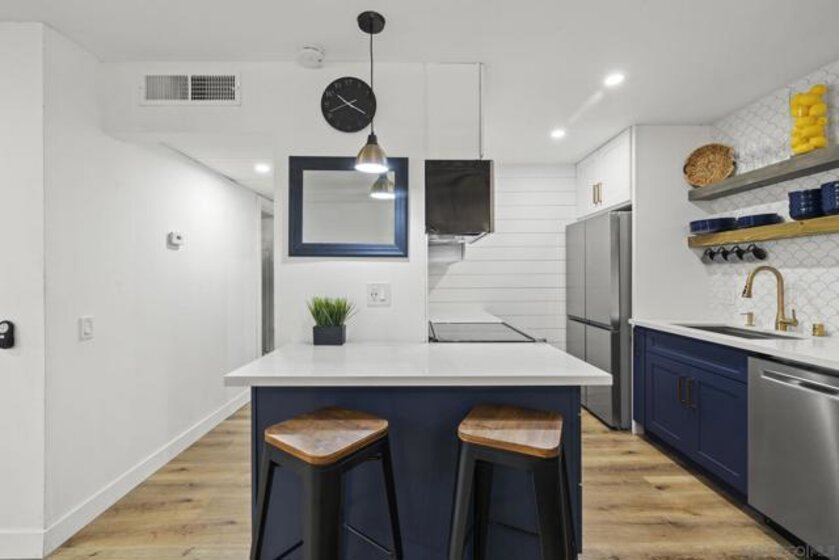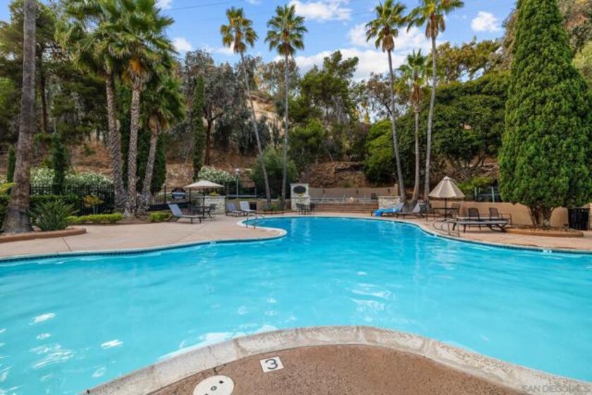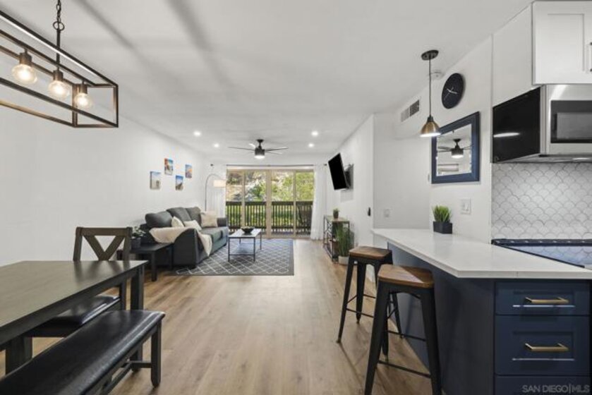 Fully remodeled spacious ground floor condo centrally located in the highly sought-after Mission Valley neighborhood at The Bluffs! This beautiful condo is located in the back of the complex along the bluffs & was renovated in 2022 top to bottom! A large private balcony, dual pane doors, central heat/AC, walk in closet and option to purchase fully furnished! The condo includes an assigned covered parking spot in a gated parking garage, elevators in all buildings & community laundry room. This beautiful gated complex features some incredible amenities including two heated pools & hot tubs, BBQs, gym, tennis courts, clubhouse & more!
