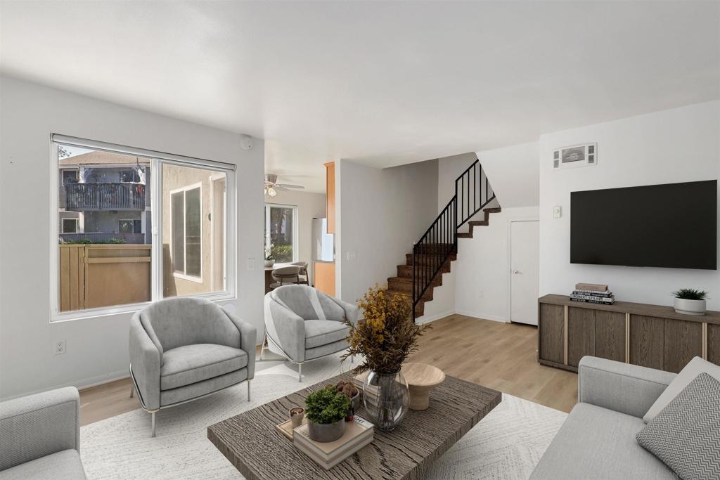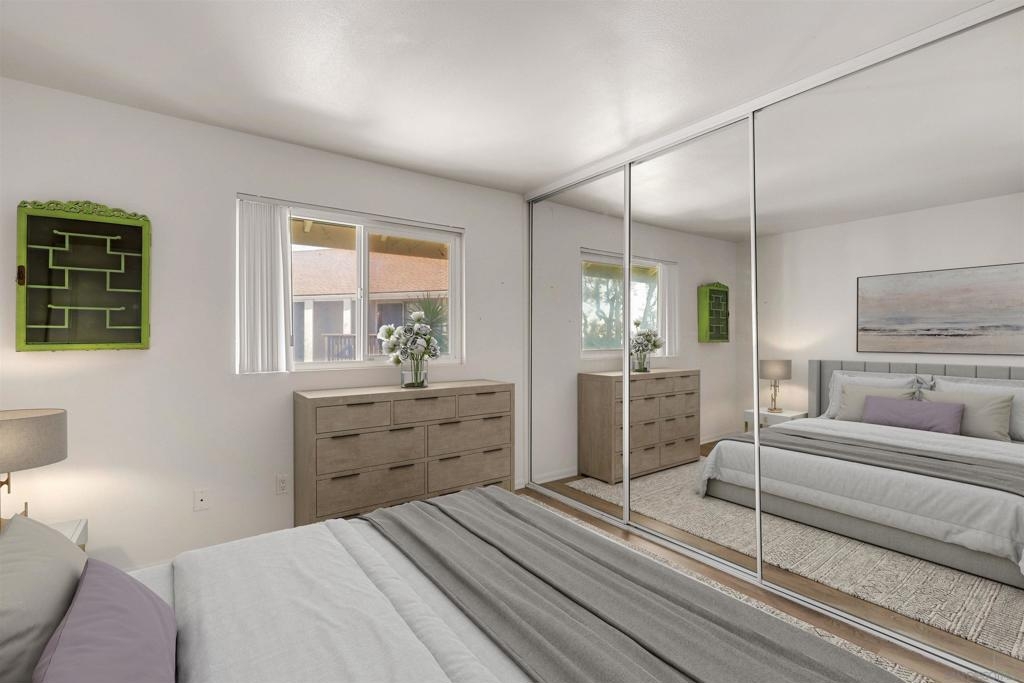 Fantastic College Grove townhome awaits! Located within the gated community of Lake Park Villas, this 2-story home features a private front entry courtyard where you can relax with your favorite beverage while enjoying the idyllic San Diego weather all year round. Enter to gaze upon a living room adorned with new laminate flooring and a large picture window that bathes the interior in natural light. The eat-in kitchen has been upgraded with granite countertops and has plenty of space for a dinette. A half bathroom on the main level adds convenience for everyday living. Upstairs features two bedrooms and a full bathroom. When the weather needs a little assistance, the 2 wall AC units will lend a helping hand. Lake Park Villas is a gated community that offers its residents beautiful landscaping, greenbelts and a swimming pool. Close to SDSU, shopping, dining and freeways. Don’t let this opportunity pass you by!