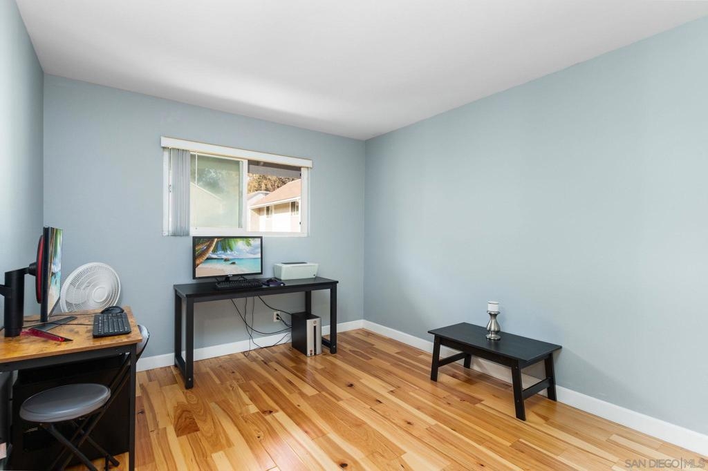 VA APPROVED! Top level, single-story, end unit condominium with 3 bedrooms and only one shared wall! Boasting beautiful wood flooring throughout, neutral paint, open floor plan, and living room balcony. The living room and dining area flow seamlessly to the updated kitchen with all matching stainless steel appliances, granite countertops, tiled backsplash, and plenty of cabinetry with glass inserts. Three generously sized bedrooms are down the hall including the primary suite with attached bath. The secondary bedrooms share the hall bath. Community amenities include: 2 assigned parking spots, and sparkling pools to enjoy. Within minutes to Chollas Lake Park, College Grove shopping mall, dining, transportation, and so much more. Don't miss out! Complex Features: ,, Sewer: Public Sewer