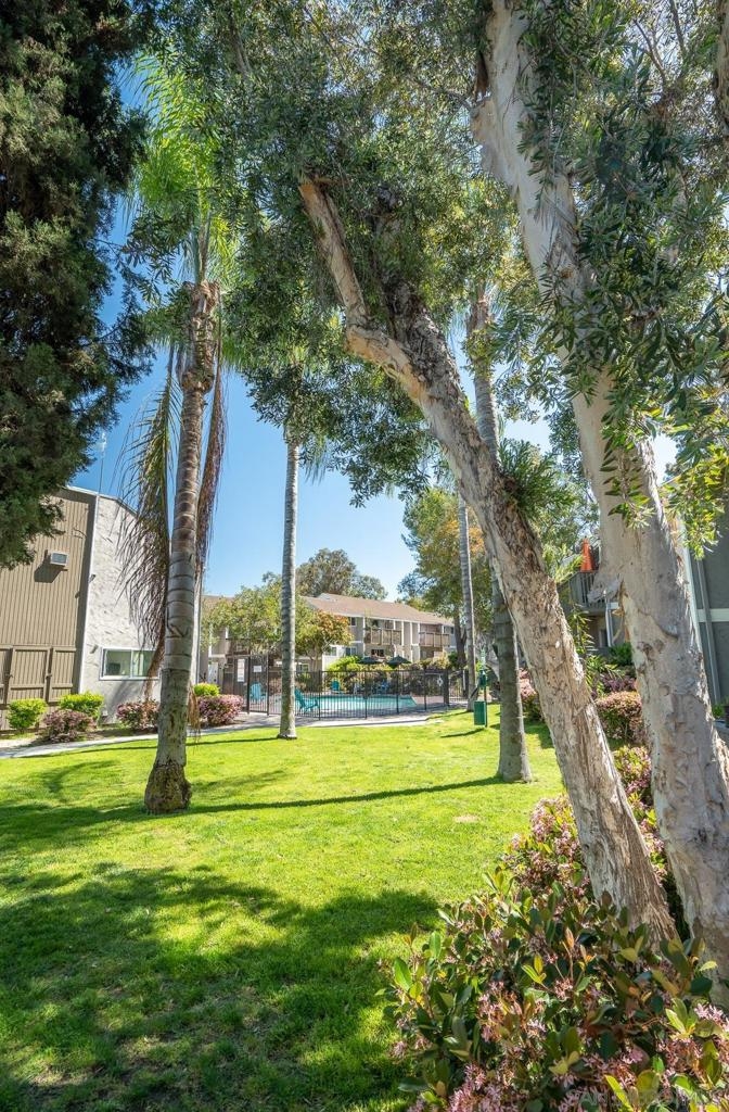Presenting this ground level and spacious unit at Lake Park Villas community. The primary suite has a large mirrored closet doors with its own private bathroom. Light and bright; kitchen has quartz countertops, laminate flooring, enclosed patio and dual pane windows. Ideal location; off the 94 Freeway, close to shopping, parks and minutes from downtown. One assigned parking spot plus a guest space. Multiple pools and community laundry throughout the well maintained complex. This is a must see!