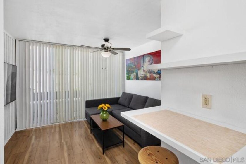 Located in the heart of Clairemont, this light and bright Studio apartment is just minutes from the beach and offers easy access to freeways, shopping, and dining. Situated on the top floor of the gated Blossom Walk community, this well-kept unit features an open living space, newer flooring, and dual pane slider door. The living room opens to a private balcony, perfect for relaxing in the sun. The galley kitchen features a built-in smooth top stove and microwave and small sitting area/workspace. Blossom Walk offers great amenities, including two pools, a fitness center, and community laundry. With schools, shops, and the beach nearby, this condo is the perfect spot to enjoy both convenience and comfort.
