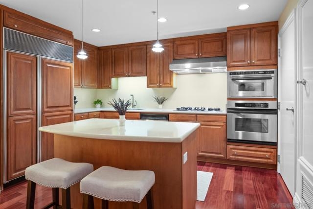 Almost 4,000 SF of panoramic and unobstructed western and northern views. Flooded with natural light through walls of telescopic windows which slide all the way open, showcasing spectacular views of the bay, ocean and city to Point Loma, and past Coronado. Corner residence boasts 3 huge bedrooms plus an office surrounded by glass walls with the most stunning views ever. Plus 4 balconies, 2 fire places, 2 parking spaces and 2 storage units. Renaissance will soon have a brand new “street level” lobby and new resort style amenities as seen in the Virtual Tour. Upon entering, you are welcomed by cathedral ceilings that enhance the light-filled, open layout. The FIRST LEVEL showcases gorgeous maple hardwood floors flow throughout the living area, complemented by telescopic windows that fully open, inviting the soothing ocean breeze inside. The family room, featuring eastern views, opens to the kitchen equipped with an island, an under counter wine cooler, ample storage, and a walk-in pantry. Enjoy three walk-out balconies on this level: two offering eastern views and one facing west for stunning sunsets. Two fireplaces enhance the ambiance: one in the living area on the first level and another in the primary bedroom suite. Convenient for your friends and family, a large guest suite provides unobstructed panoramic water and city views, complete with custom shutters for adjustable light control and includes a walk-in closet and an ensuite bathroom with a multi-jet shower. Plus a powder room convenient for your guests. SECOND LEVEL: Bedroom two features a spacious layout, a gigantic walk-in closet, and a walk-in shower. The expansive primary suite spans boasts nearly 900 square feet and includes crown molding throughout. The fireplace creates a cozy atmosphere, complemented by a comfortable sitting area by the bay facing window. Enjoy a luxurious Jacuzzi tub, dual sinks, and a multi-shower fixture in the primary ensuite catering to your every need. Adjacent to the primary suite is a large office with stunning north and west views through walls of glass, showcasing sparkling water and city lights, along with enhanced privacy. A spacious and private balcony directly off the primary suite offers uninterrupted water views, perfect for romantic evenings or enjoying a good book while watching boats, yachts, and the cityscape extending to the mountains. Two side-by-side parking spaces and two storage areas—one large cage and a temperature-controlled storage room for valuable items like artwork. Renaissance will soon have a brand new “street level” lobby and new resort style amenities including a large landscaped courtyard w/ BBQ aren, 3 fire pits w/ a dining area, pool/spa, gym, community lounge w/ full kitchen, conference room, surveillance throughout the community & 24/7 desk attendants. Ground floor retail conveniently includes Postal Annex for easy Amazon returns, Discount Nutrition & Vitality Juice, Rolling Out Bakery, Vases Salon, iTan and Wells Fargo. Located across from Ralph’s 24 hr. grocery w/ cafes on every corner, steps to the waterfront and Little Italy & just minutes to airport & public transportation and a ferry ride to Coronado. Welcome to paradise!