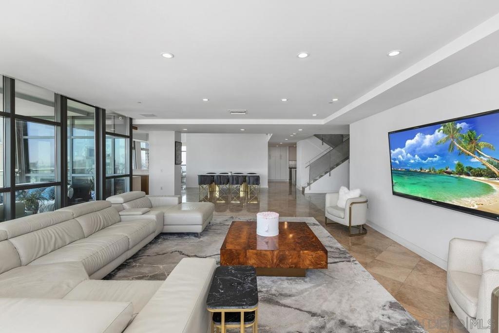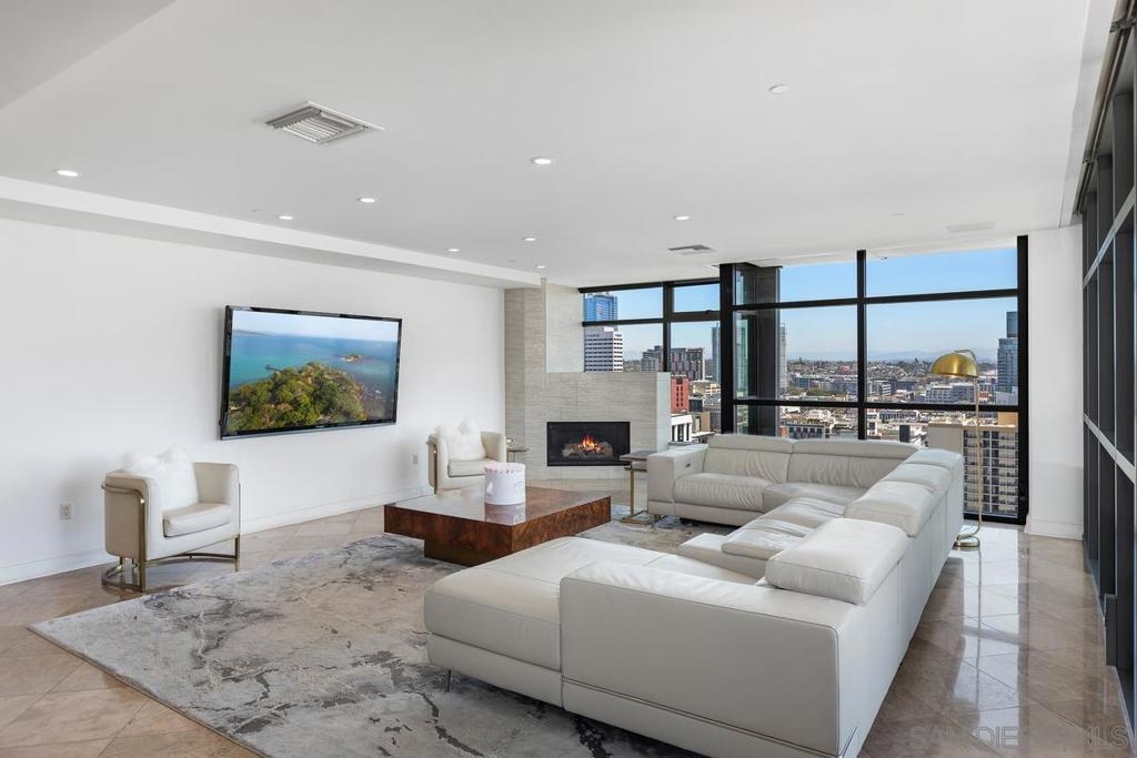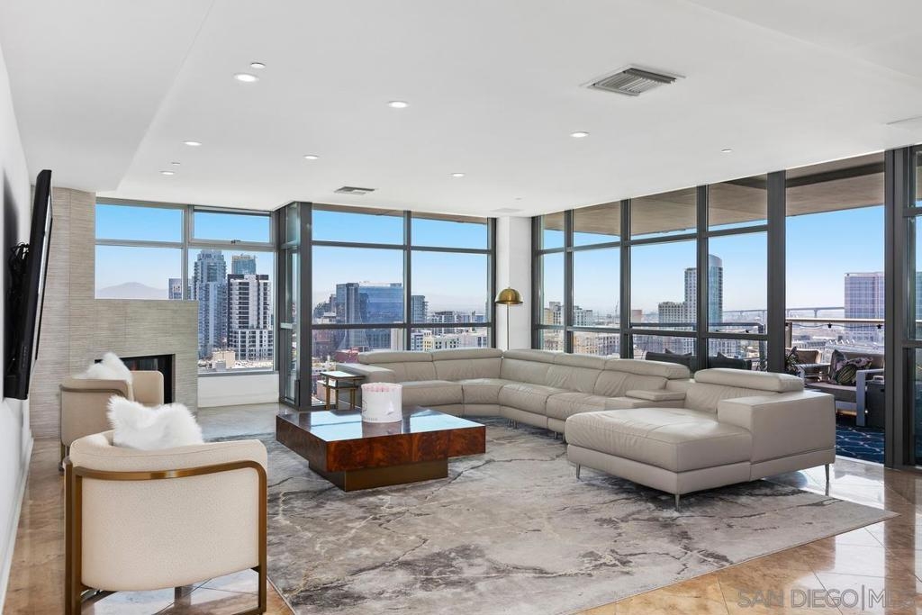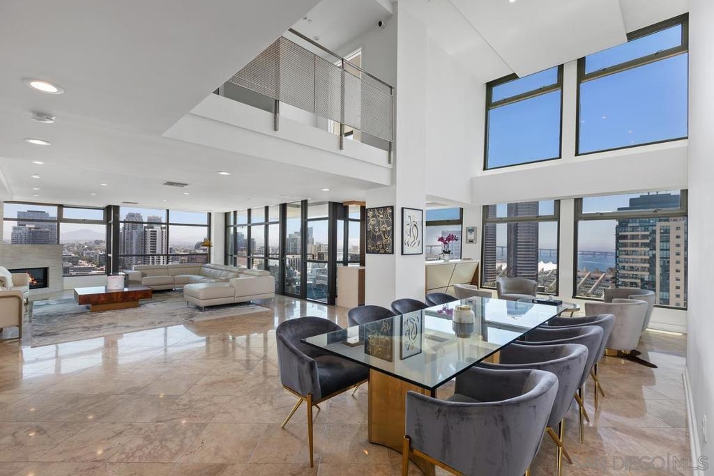 THIS IS IT! Experience the ultimate in upscale urban living in this breathtaking two-level penthouse perched high above San Diego’s exclusive Marina District this is one of the largest units in all of San Diego boasting over 4,500 square ft of space with no waste. Located in the prestigious Renaissance building, this one-of-one residence showcases dramatic city, bay, and coastline views from nearly every room, offering a lifestyle of sophistication, privacy, and comfort. Meticulously designed to offer both grandeur and functionality. From custom materials like the limestone and marble floors, to both electronic and physical bidets, as well as smart home switches in every room. Secondary bedroom with shower, jetted spa tub, and walk in closet. Additional en-suite guest room with fireplace is larger than most penthouse primary bedrooms. Chef’s Dream Kitchen, Designed for culinary excellence, the kitchen boasts a professional Wolf range, SubZero Fridge, built-in warming drawer, sleek Wolf microwave drawer, and elegant waterfall-edge stone island. Building boasts 24/7 Security & front desk staff, heated outdoor pool, spa, BBQ area, and well-equipped fitness center. Unit comes with large private storage and Two Side-by-Side parking spaces on lvl 1. Walking distance to the Gaslamp Quarter, Little Italy, Petco Park, the San Diego Convention Center, Seaport Village, and the Waterfront Embarcadero. Enjoy world-class dining, shopping, arts, and entertainment right outside your door. With quick access to major freeways and the airport, it’s as convenient as it is luxurious.