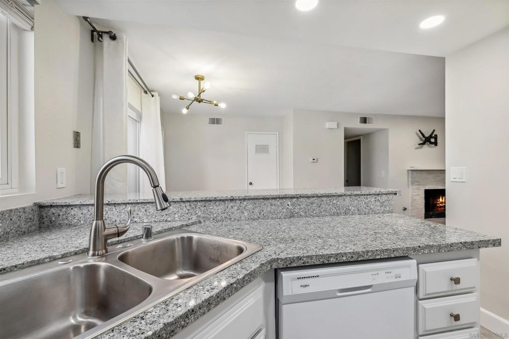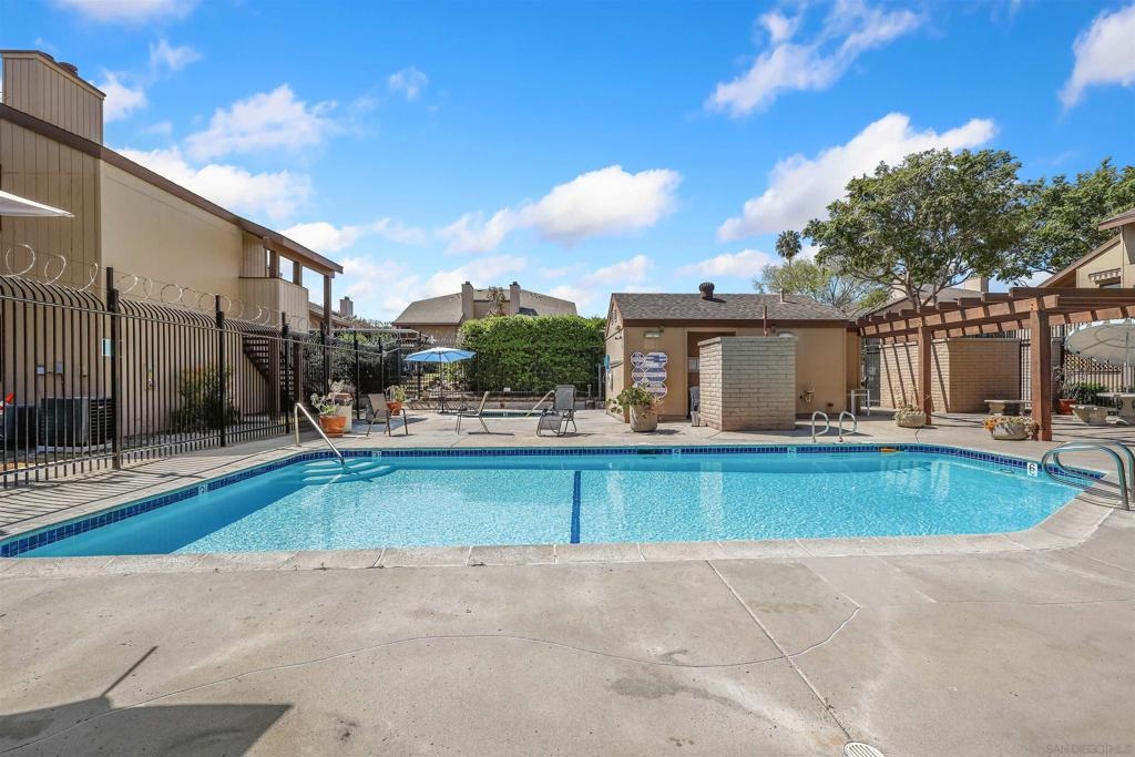 Step into your newly renovated single-level haven nestled in the vibrant heart of San Diego! This ground-level condo presents a contemporary take on comfort, featuring 2 bedrooms, 2 baths, and an inviting open layout. Fresh interior paint throughout enhances the space, complementing the beautiful luxury vinyl plank flooring throughout the house. Feel the warmth of the fireplace in the spacious living room, perfect for cozy evenings. With bedrooms strategically positioned on opposite ends, enjoy the privacy and convenience akin to dual primary suites. Ample closets provide plenty of storage space while the private patio invites outdoor relaxation. In-unit laundry accommodations for a full-size washer/dryer streamlining chores. Convenience is key with guest parking and community pool nearby, along with 1 carport space. The community provides plenty of uncovered guest parking spaces, making entertaining a breeze. Just a stone's throw away from a tranquil community green space, ideal for your beloved pets to play and roam freely. Leave the car parked and explore nearby amenities including a major shopping center across the street and easy access to SDSU. This well-maintained complex ensures a worry-free lifestyle, while freeway access adds to the allure of this desirable home. Welcome to your serene retreat in the heart of convenience!