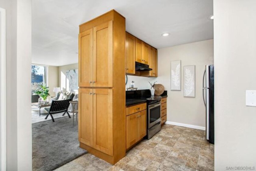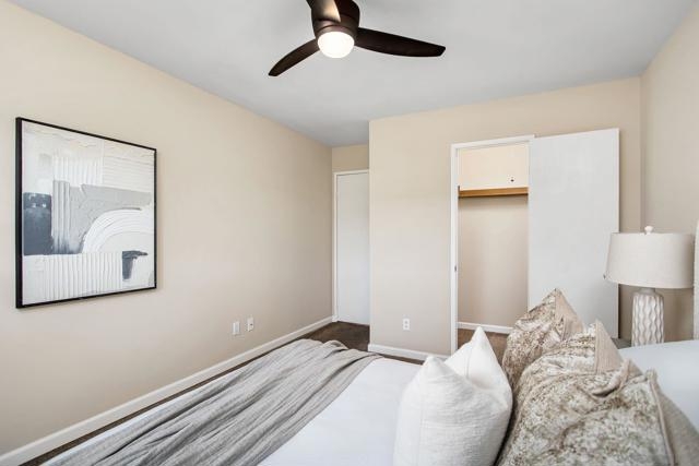 Welcome to your bright and inviting 1-bedroom, 1-bathroom condo with exceptional panoramic views, located above Mission Gorge Road in the desirable Allied Gardens community. Step inside to an open and airy floor plan that flows seamlessly from the kitchen to the dining and living areas. The kitchen features a large window above the sink, stainless steel appliances, and generous cabinet space including a pantry cupboard. The living and dining spaces are filled with natural light from the expansive window framing stunning views of the Admiral Baker Golf Course. Enjoy your morning coffee or evening wine on the private patio overlooking the lush golf course—complete with a storage closet for convenience. The spacious bedroom also has a beautiful view and features a large walk-in closet. The bathroom offers a full tub/shower combo, a roomy vanity, and additional storage above the toilet. You’ll also find a handy coat closet with shelving just outside. This gated community offers many amenities including a jacuzzi, gym, steam room, and fruit trees scattered throughout the property. One assigned covered parking space is included. The low HOA covers water, sewer, trash, roof, and common area maintenance—making for easy living and great value. You’ll love being close to Mission Trails Regional Park for weekend hikes, SDSU and Snapdragon Stadium for concerts and games. Plus, Kaiser Zion Hospital and Vandever Medical Center are nearby. There are also many shops, groceries and restaurants including local favorites like Better Buzz Coffee, In-N-Out, and Pho Xpress (a neighborhood gem!) With quick access to the 8 and 15 freeways, convenience is at your doorstep. This condo offers incredible value—perfect for first-time homebuyers looking to enter the market or investors seeking a strong rental opportunity. The current owners have successfully used it as an income property, and now it’s ready for its next chapter.