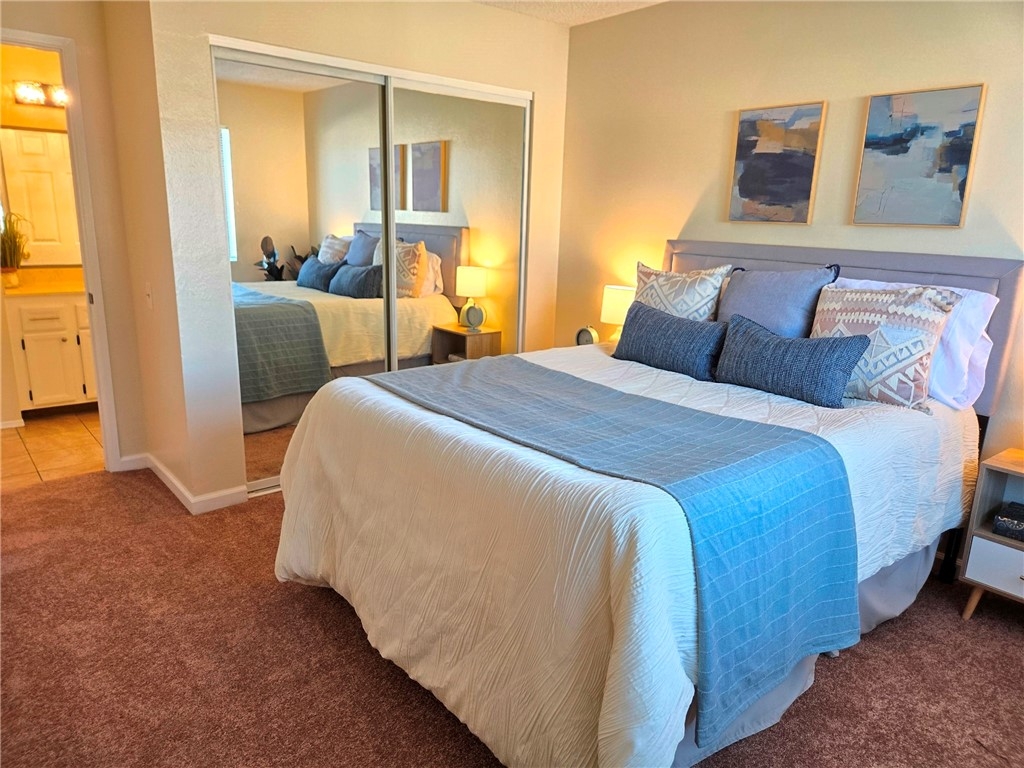 Welcome home to Mission Garden Condos! Move in ready one bedroom + 1 bath unit with new appliances and fixtures. New paint and carpet throughout the unit. Kitchen has been updated with new Electric stove, New dishwasher, New exhaust hood fan, New sink and faucet, New under the sink garbage disposal, New counter tops, painted kitchen cabinets. Bathroom has New faucet valves and New shower heads and handles. Located on the second floor of the rear building and away from the busier road, in addition this unit does not have any downstairs's neighbors. Enjoy the convenience of being centrally located to nearby shopping, restaurants, hiking, parks and highway access. Take in San Diego's beautiful weather year round from your private balcony with additional storage. In-unit Washer/ Dryer and the unit includes an assigned covered parking space. Pool in the complex. Pet friendly HOA.