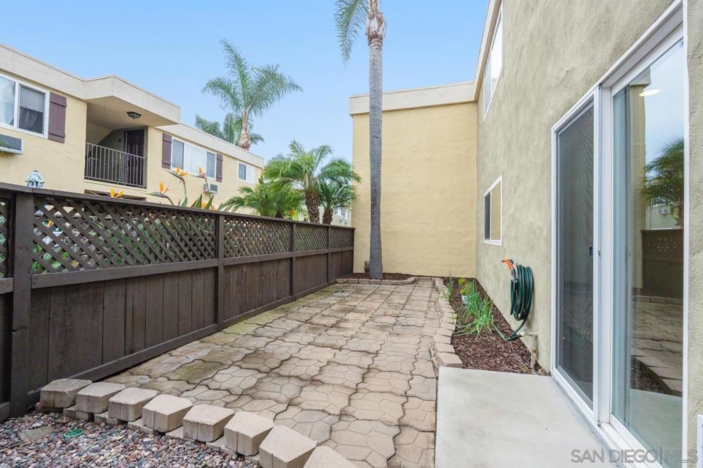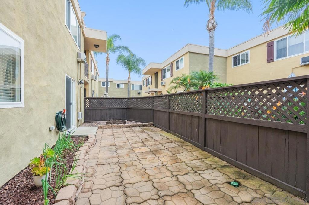 Ground-floor gem with the largest backyard in the complex! This beautifully updated 2-bedroom, 2-bath condo offers indoor-outdoor living in a gated community in the heart of Clairemont. Enjoy recessed lighting in the living room and bedrooms, granite countertops, stainless steel appliances, a ceiling fan, and fresh new paint throughout. Stay comfortable year-round with a brand-new A/C unit. The expansive private backyard is perfect for entertaining, gardening, or relaxing—an exceptional find for a condo. Residents enjoy access to a community pool, and the home is ideally located with quick access to the 805 and 163 freeways, shopping, dining, and major conveniences throughout Clairemont. Just minutes from some of San Diego’s best beaches, including La Jolla and Pacific Beach. A rare opportunity to own a move-in-ready ground-floor home with outdoor space in a central San Diego location.