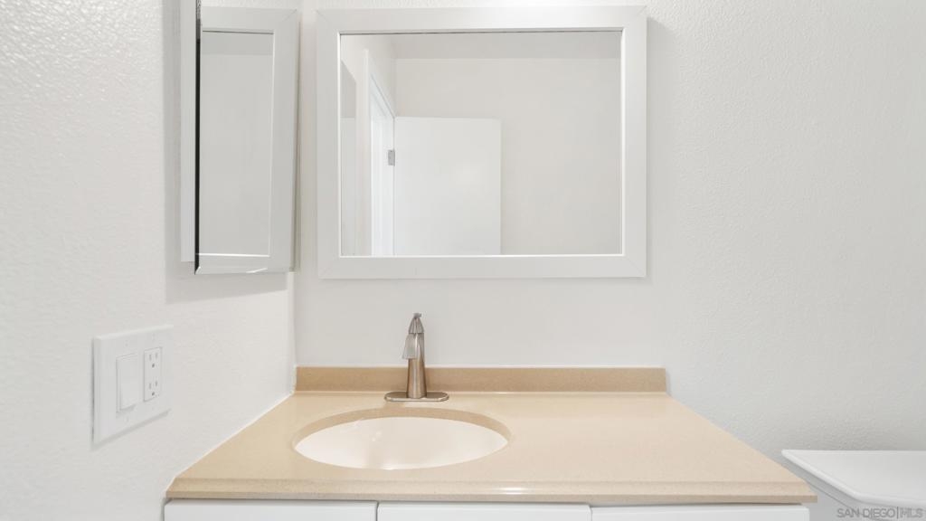 Centrally located renovated bottom floor south facing condo located on the exterior edge of the complex with direct access from Friars Road. Kitchen now boasts the following newly installed items: soft touch cabinets & drawers (Harbor Grey), Butcher Block counter top, sink & garbage disposal. New electrical outlets throughout with GFCI’s installed in the kitchen & bathrooms. Kitchen & bedrooms painted in Swiss Coffee & coated with the Egg Shell semi-gloss. Baseboards (new), door jams & doors painted in Pure White & coated with the Egg Shell semi-gloss. Entire ceiling newly painted. Brand new carpet & door handles throughout. New light fixtures in the dining room (to include new ceiling fan), hallway &primary bathroom hallway. Tile floor in the primary bathroom is newly installed. Dual pane windows & sliding glass door provide enhanced tranquility as well as facilitates easy entry into the unit for visitors from Friars. Three newly installed smoke detectors. New kitchen appliances & cabinets, two vanity sinks & medicine cabinets, overhead fans, toilet, fiber glass shower / trim with two sliding glass bypass doors newly installed in the primary bathroom. Newly installed shower cutoff valve (not visible) which allows for unimpeded repairs &/or changes. Second bathroom boasts newly installed toilet, fixtures, medicine cabinets, shower faucets & trim. Exceedingly close proximity to major freeway access, two shopping malls, restaurants, the Y, University of San Diego, Sea World, Mission Bay & the beaches. Come see for yourself what this dwelling has to offer! Substantial closet & storage space throughout. Community laundry room located at end of main hallway. HOA pays for basic cable & the service provider is Spectrum.