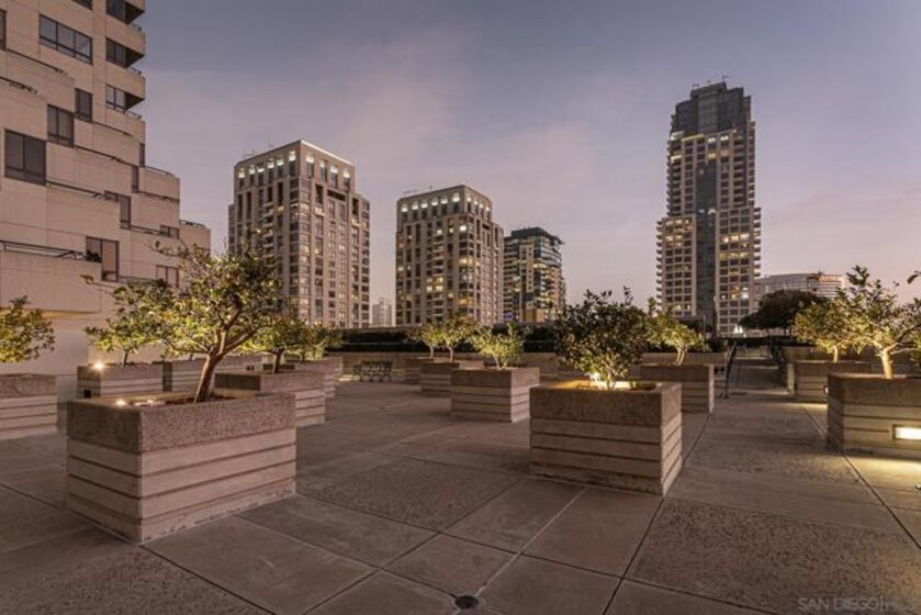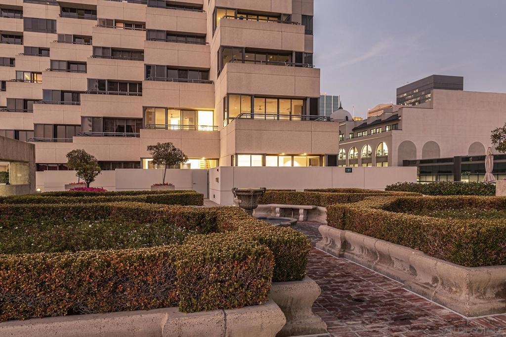 Deliberately conceived as a Terrace Level "penthouse" and distinguished as being uniquely one of over 70 different floor plans, MERIDIAN 501 presents a rarefied opportunity to immediately enjoy a just-completed dramatic remodel that offers a totally unexpected urban oasis. Impeccably crafted, sleek, modern bespoke interiors are both timeless and thoughtfully designed. Gleaming marble floors, polished cabinetry, top-of-the-line fixtures and appliances, abundant storage, high ceilings, and wraparound luminous interiors with walls of glass and sliding doors complement the inviting spacious living and entertaining areas. Located on the 5th floor, offering privacy and the luxury of space are the primary suite and second bedroom en suite. For the ultimate in convenience, there is the clever kitchenette with a sink, dishwasher, Sub-Zero refrigerator/freezer, and generous space for the cappuccino maker to start your day or nightcap refreshments as you wish. Unexpected are the luminous interiors that seamlessly flow to the outdoors. Each bedroom hosts an expansive open terrace overlooking the well-maintained European-styled formal gardens and the host of other inviting resort-style amenities just steps away on the 2/3-acre outdoor plaza. Gracious entertaining and design options abound on the 4th floor Plaza level with two entrances, walls for art and personal treasures, a grand-scaled kitchen for the serious gourmet chef, a flexible separate dining/library/den space, and more. The coveted wraparound courtyard offers a continuous alfresco living experience to make your own. MERIDIAN CONDOMINIUMS, a landmark residential community deliberately conceived and impeccably crafted, remains without peer. Incomparable services are offered by an attentive staff consisting of 24 hour Parking Attendants for Residents and their Guests, Door Person, Porter, Concierge and more. A completely separate service entry with loading dock and service elevator is staffed with Porters to accept packages, deliveries and tradespeople. For your convenience, groceries, packages, dry cleaning, luggage and more can be delivered to your door. Impeccably maintained, pride of ownership abounds. Whether you are entertaining on a grand scale or merely relaxing by the sparkling pool, MERIDIAN’s accommodations are sure to exceed your expectations. Greeted by a sophisticated private art gallery, the Plaza Level boasts limitless accommodations to guests and residents alike. The MERIDIAN Room, designed with a catering kitchen, bar, cloakroom, and restrooms offers an elegant entertaining environment for both large-scale and intimate parties. Elegant formal gardens, a grove of citrus trees, an outdoor spa and adjoining fire pit complement the inviting pool and lounging/sunning areas on the unique 2/3 of an acre outdoor plaza elevated high above the cityscape. Other features adding to the convenience and comfort at MERIDIAN include two resort-caliber spa and fitness facilities, five lovely Guest Suites to welcome visiting friends and family, and Conference Room ideal for business meetings and presentations or small-scale entertaining. At the foot of MERIDIAN lies MERIDIAN PLACE, offering a myriad of fine retailers to conveniently complete the needs of your lifestyle. Salon and spa services, cosmetic dentistry, medical services, dry cleaning, fine dining, and much more are literally an elevator ride away. Take advantage of MERIDIAN’s premier downtown location and explore the countless restaurants, cultural attractions, and miles of scenic pathways. Enjoy a lifestyle that is without parallel . . . enjoy MERIDIAN living!