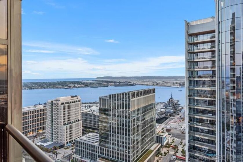 Behold a one of a kind exclusive retreat, perched majestically on the 35th floor of the iconic Electra, high above San Diego’s vibrant heartbeat. This coveted northwest-corner residence unveils a sweeping panorama of the bay and city skyline, as though the horizon itself were framed just for you. Step inside—and be captivated by lustrous Cherry hardwood floors that flow beneath expansive windows, flooding every room with radiant daylight. A cozy fireplace infuses the space with soft warmth and an intimate ambiance. Two balconies beckon—the western terrace your private stage for nightly sunset dance over the bay. Culinary artistry awaits in your gourmet kitchen, outfitted with stainless-steel Bosch and Thermador appliances, polished granite counters, and a chic breakfast bar perfect for casual gatherings. Outside your front door, the excitement of downtown life is yours to embrace—just a short stroll to Waterfront Park, Seaport Village, and the eclectic energy of Little Italy. Here, luxury is not an afterthought—it is a way of life. A dedicated concierge attends to your needs, serene steam room, resort-style pool and spa, and fully equipped fitness center await your indulgence. On the tranquil 5th floor, Electra Park and BBQ terraces offer serene garden escapes amidst the urban hum with two parking spaces flanking a built-in EV charging station and a private storage. Ascend to new heights—experience life among the clouds in a residence that effortlessly elevates luxury and lifestyle into one sublime experience. Must see!