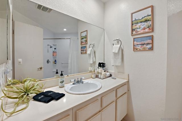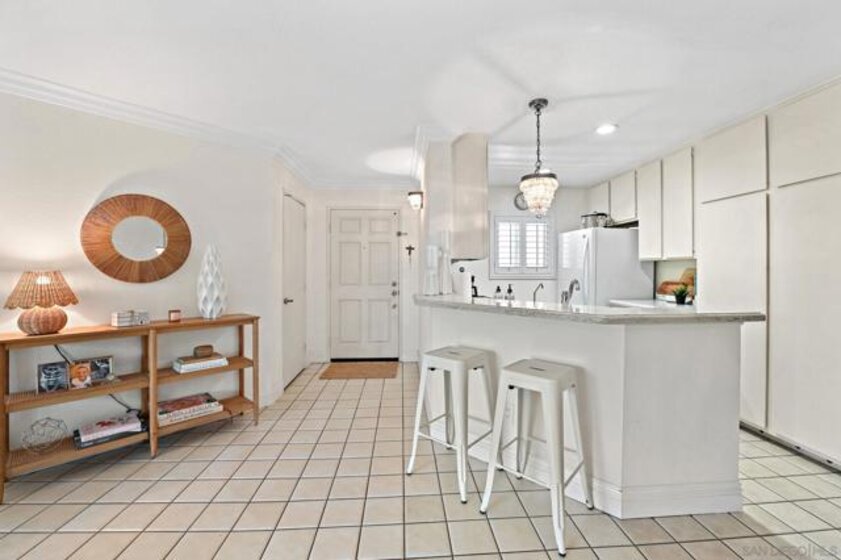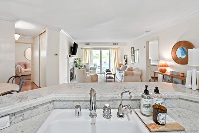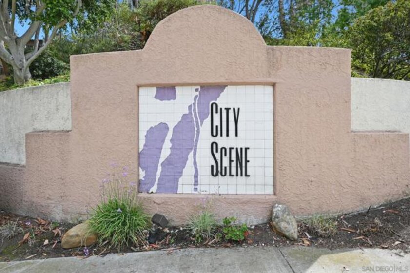 Charming condo in City Scene with fabulous location within the development - away from the street and powerlines. This condo has a sunny and large patio that expands use of San Diego's finest weather. The condo is thoughtfully designed to have separate bedrooms and baths which is perfect to accommodate guests or a roommate. Few condos at this price also offer indoor laundry, a fireplace, and a two car garage. The owners have installed laminate flooring, quartz kitchen countertops, upgraded kitchen faucets and lighting fixtures, modern fireplace surround, updated sliding doors, updated primary shower and the furnace and A/C have been recently replaced. The development is centrally located and is minutes to shopping, restaurants, beaches and downtown.
