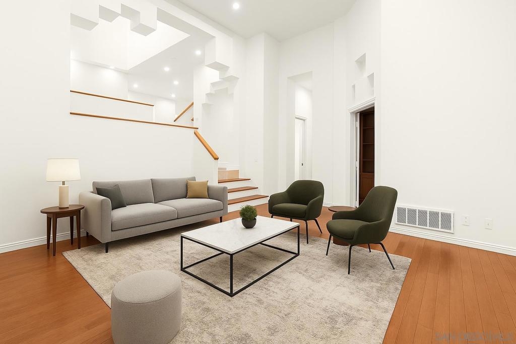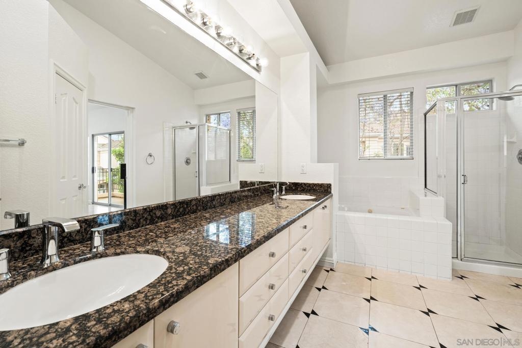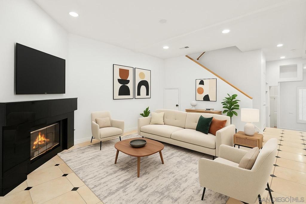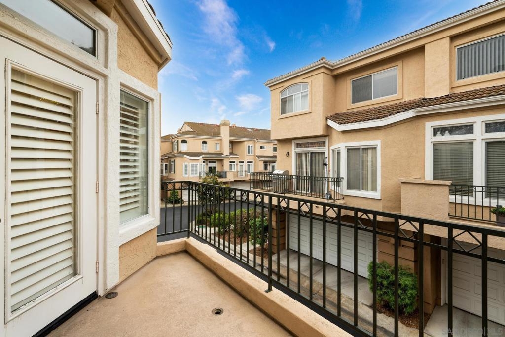 Welcome to this beautifully appointed tri-level townhome located in the desirable Avanti complex within the prestigious Renaissance community of University City. This spacious 3-bedroom, 3-bath residence offers the perfect blend of modern comfort and urban convenience. Step inside to find a light-filled living area with an open floor plan that seamlessly connects the living, dining, and kitchen spaces—ideal for both entertaining and everyday living. The stylish kitchen features ample cabinetry, sleek countertops, and a breakfast in area for casual dining. Upstairs, the primary bedroom retreat offers a private sanctuary complete with generous closet space and a spa-like en-suite bath, fireplace, and private balcony. The second bedroom offers and en suite bathroom and first floor bedroom provides flexibility for family, guests, or a dedicated home office. Additional features include a private attached garage, in garage full size laundry, and central heating and air conditioning. The Avanti complex offers resort-style amenities including lush landscaping, walking paths, and a community pool and spa. Centrally located near top-rated schools, UCSD, shopping, dining, and easy freeway access, this home combines luxury living with unbeatable location. Don’t miss the opportunity to make this exceptional property your own.