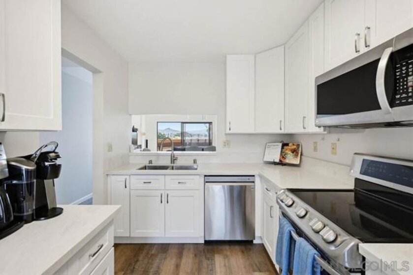 Top floor, corner condo with sweeping views of the mountains! Beautifully remodeled with an abundance of natural light. Kitchen has stainless steel appliances, modern cabinetry, stylish finishes, and a breakfast nook. Renovated bathrooms have a fresh, contemporary feel. Other features include spacious bedrooms, upgraded flooring, indoor laundry, assigned parking, ample storage with a pantry, a large closet off the balcony and a 8x4x2 storage unit! Enjoy living within a secure, well-maintained community with access to fantastic community amenities including a sparkling pool, spa, community center, and bbq. Ideally situated within walking distance to scenic hiking trails, popular restaurants, local shops, and a grocery store. With its unbeatable location, stylish updates, and wonderful community amenities, this is a must see!