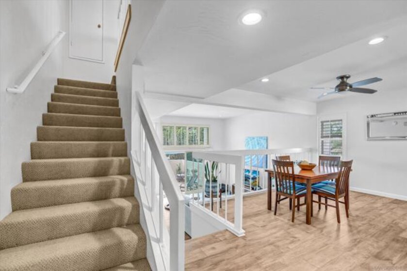 Come see this beautiful town home at the lovely Vista Del Cerro complex! This end unit has been tastefully updated and is just gorgeous! Enjoy the sunsets, views and breezes coming through the many windows of this bright unit. Enjoy the Sea World fireworks during the summer too! This town home really lives like a single family house since there is no one in front of you and it's an end unit! The patio is likely one of the largest you will find in a town home. The seller has extensively remodeled this unit over the past several years with newer electrical panel, including outlets and GFIs as well as updated plumbing.The kitchen is quite roomy with a breakfast bar, all new cabinets with pull out shelves and quartz counter tops. Recessed lighting and plantation shutters throughout as well as new sliding glass doors and a new hot water heater. The bathrooms have all been remodeled as well. THe flooring is engineered hardwood and there are ceiling fans throughout! Also, this unit features 2 primary suites!!! This home is truly MOVE IN READY. The HOA includes a pool, spa and clubhouse.