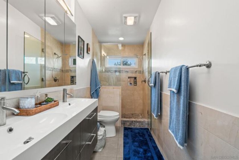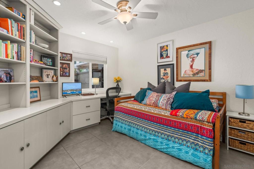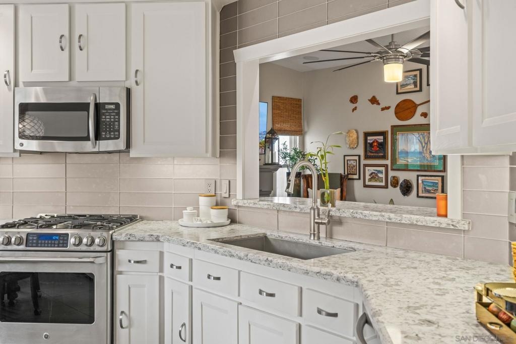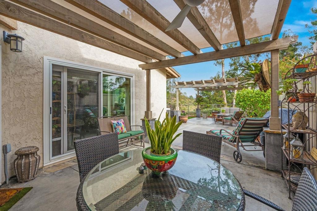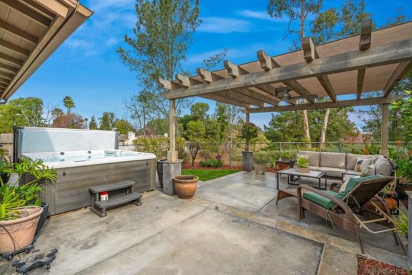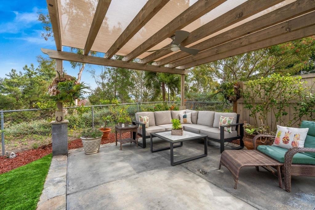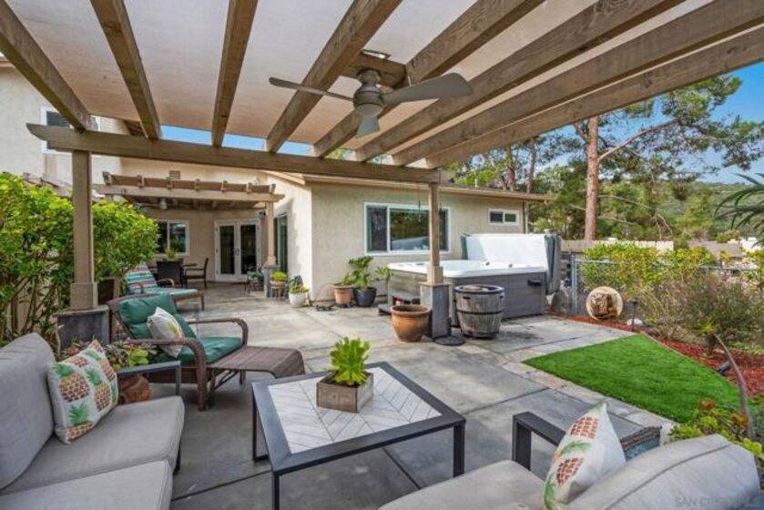 Gorgeous single story home in the Cottages with private and peaceful yard. This home is chalk full of upgrades including a chef inspired kitchen with quartz countertops, stainless steel appliances and beautiful cabinetry. Both bathrooms have been remodeled with designer tiled shower stalls, vanities and sinks. Custom cabinetry by CA Closets in both bedroom closets and the garage. This home has one of the largest exclusive and private yards in the complex and includes a custom made pergola, lighting, speakers, hot tub and more all with serene views. Just minutes to Mission Trails Park, Lake Murray and steps to Cowles Mountain. This former model home includes Milgard dual pane windows throughout, indoor & outdoor speakers (app controllable), a whole house water filtration system, tankless water heater and central A/C supplemented by beautiful ceiling fans. All appliances convey. Beautiful community pool and spa as well as your own private spa. The Cottages is known as a premier community in San Carlos. The single story units are rarely available. Don't miss out on this opportunity! PLEASE NOTE: All information is deemed to be reliable, but not guaranteed. It is the responsibility of the buyer and their agent to confirm all information and to satisfy all concerns prior to removal of all contingencies and close of escrow. It is also the responsibility of the buyer and their agent to verify all room sizes, lot size and dimensions. The existence of any permits is unknown and it is the responsibility of the buyer and their agent to confirm them or lack thereof prior to the removal of all contingencies and close of escrow.