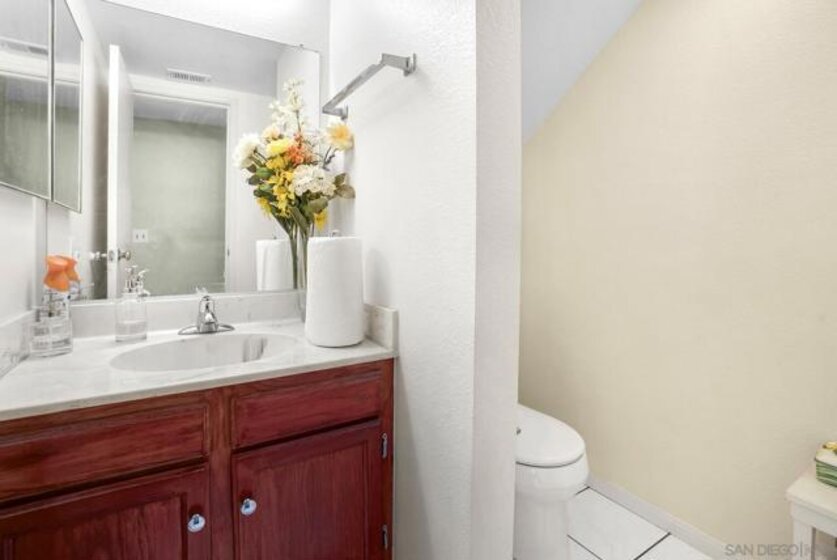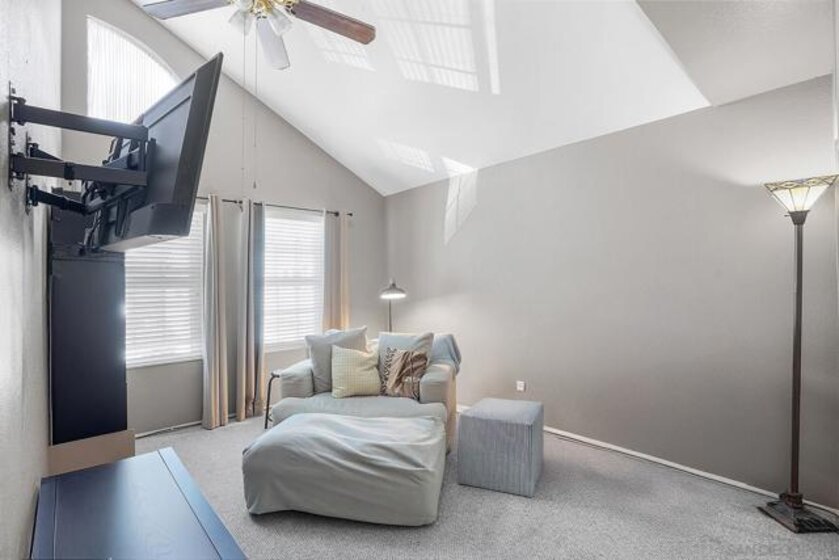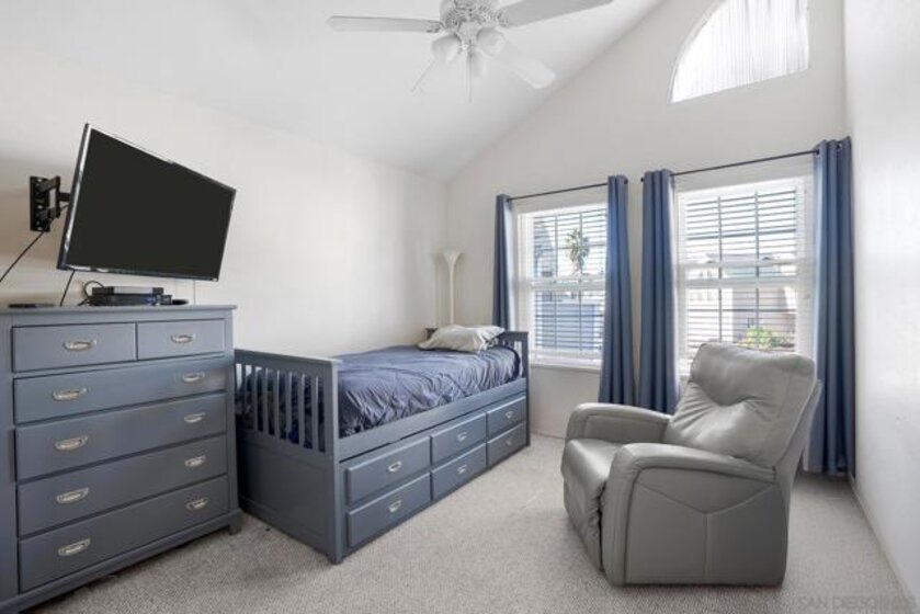 Welcome home! VA approved. Enjoy a cozy evening by the gas fireplace in the spacious living room or relax outdoors on your private patio. Guests will appreciate the convenient downstairs half bath. Upstairs, a dramatic overlook opens to the living room below, and nearly every room is filled with natural light. The oversized primary bedroom features a walk-in closet, and two additional bedrooms offer flexible use for family, guests, or a home office. This home includes in-unit laundry hookups, a roomy 2-car garage, plus 2 parking spaces total of 4. The well-cared-for this small home community offers a peaceful, neighborly atmosphere. Recent upgrades include double-paned vinyl windows, 2-inch blinds, new roofing, central A/C and heating, ceiling fans in all bedrooms and the dining area, laminate and tile flooring, and fresh exterior paint. The kitchen comes complete with appliances. Located in a central area with quick access to 94, 125, and 805, this home makes commuting easy and puts shopping, dining, and entertainment within reach. Tenant occupied — please do not disturb.