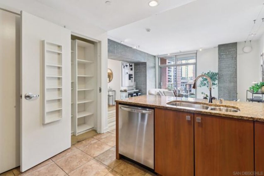 Experience elevated urban living at The Mark in Downtown San Diego’s vibrant East Village. This spacious 2-bedroom, 2-bath residence offers approximately 1,228 sq ft of thoughtfully designed living space, blending modern upgrades with striking architectural elements. An ideal split-bedroom floor plan ensures privacy, with both bedrooms and bathrooms offering generous space and comfort. Inside, an open-concept layout unfolds with floor-to-ceiling windows that flood the home with natural light and city vistas, along with expansive living and dining areas perfect for everyday living and entertaining. The kitchen is well-appointed with quality appliances, dual wine refrigerators, and ample storage, creating a functional and refined culinary space. Both bathrooms showcase distinctive custom rock wall accents, adding a bold, spa-inspired aesthetic, while the large walk-in closet with built-ins offers exceptional organization. Step outside to a private patio overlooking park-like grounds with pool and green space views—ideal for relaxing or hosting guests. Additional highlights include in-unit laundry, a dedicated storage locker, and two side-by-side parking spaces in a secure garage. Residents enjoy resort-style amenities including a pool and spa, fitness center, concierge service, and 24-hour security, all just moments from Petco Park and the Gaslamp Quarter.