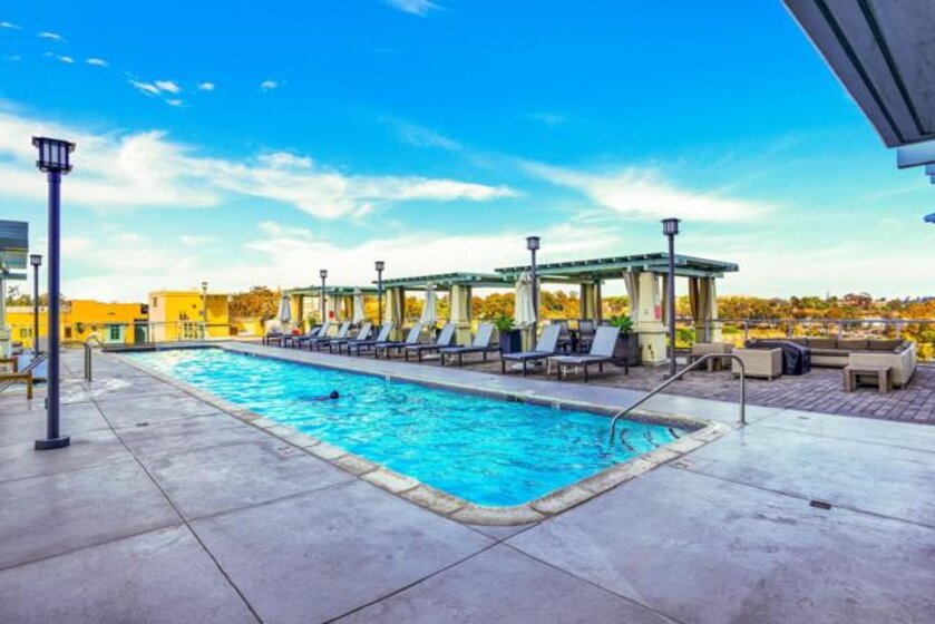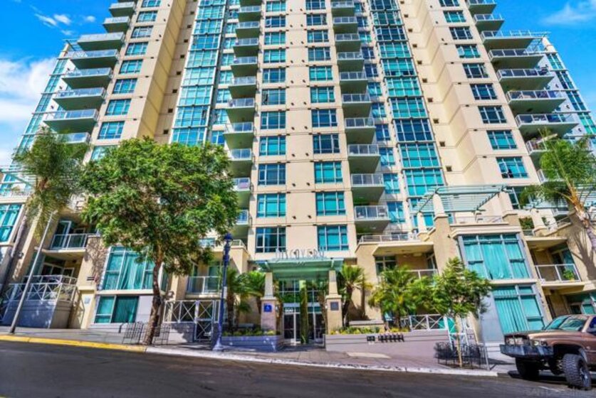 Discovery #214, this large unit is a one-bedroom and one-bath MOVE-IN ready. Designed with practicality in mind, the unit features no carpeting; instead, tile flooring extend throughout, offering both, a modern aesthetic and easy maintenance and bright Sherwin-Williams EMERALD new paint throughout. Step out onto your private patio, a generous outdoor retreat perfect for al fresco dining or simply unwinding after a day in the vibrant city or your furry friend open terrace. The convenience of one, underground secure parking dedicated spot and a dedicated storage further elevates the everyday experience, while the community exudes exclusivity. Ah, yes! Discovery is super dog friendly. Set in a high-rise that masterfully balances downtown energy with a tranquil, suburban feel of Cortez Hill, residents enjoy access to a full suite of resort-style amenities. From a heated rooftop pool and spa with sweeping city views to a state-of-the-art fitness center, steam room, dry sauna, and inviting cabanas, fire pits, dining areas for gatherings, every amenity is curated to enhance your lifestyle in one of San Diego’s most coveted locales. Cortez Hill has it all, Yoga Studio "The Little Yoga Studio", a personal training spot "Moe Fitness For All", Pilates Studio, Neighborhood Restaurant, Med Spa - nails salon "Anna Kara", Hair Salon "Bespoke Hair Salon", a Mini Mart, Coffee Shop and more. Join the incredible commUNITY of Cortez Hill. 8-minutes walk to everything; Little Italy, Gaslamp or Balboa Parlk. Drive to museum only 5 min drive to Balboa Park and 10 minutes to San Diego Airport !! Live in San Diego Downtown with a feeling of the Suburbs. Parking space located on P3 #47. Exclusive use of storage located on 2nd floor Storage Room #2. Exclusive use of yard its your own private outdoor patio.