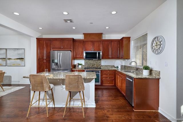 Views, Views, and more Views. This stunning Del Sur Townhome features panoramic sunset views from the backyard, kitchen, bedrooms and loft, making it the perfect home for you to come home and recline in your backyard at the end of the day. Nestled in a fantastic location within the highly desired Del Sur community, this home provides easy access to trails, shopping, Del Sur Elementary, and key roads to shorten your commute. This 3-story home offers three full bedrooms on the second floor and an oversized loft on the third floor that can be converted into Bedroom 4. The backyard features a covered patio and low maintenance/low water landscaping including artificial turf. The balcony off the primary bedroom provides a private place from which to enjoy the evening sunset. Buyer to pay Del Sur Private Transfer Fee of 1/4 of 1% of the sales price