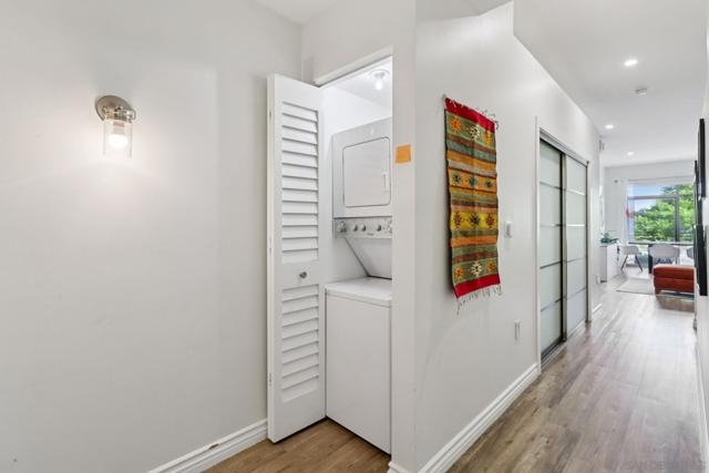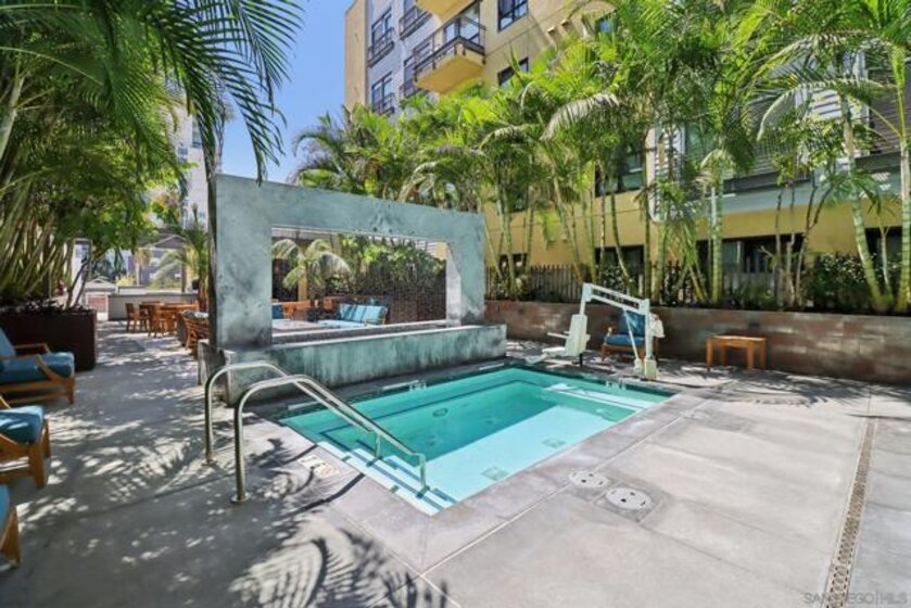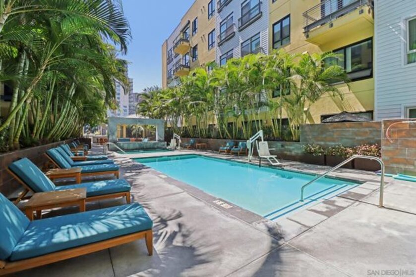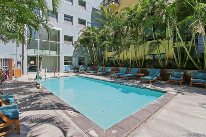 Fully upgraded studio that lives like a 1BR in the highly desirable Aloft Condominiums at Cortez Hill. This thoughtfully designed home offers a spacious feel with an open floor plan and a sliding glass door that fills the space with natural light while opening to peaceful west-facing views of mature greenery. The unit features modern upgrades throughout, central AC, and the convenience of an in-unit washer and dryer. Aloft residents enjoy resort-style amenities including a pool, spa, fitness center, front desk concierge, and secure underground garage parking. Nestled in a quiet pocket of Cortez Hill next to a small neighborhood park, the building offers a tranquil retreat while still being within walking distance to Little Italy, Balboa Park, the Gaslamp Quarter, and East Village. Ideal for first-time buyers, investors, or those seeking a modern urban retreat, this home combines comfort, convenience, and location in one of San Diego’s most connected neighborhoods.