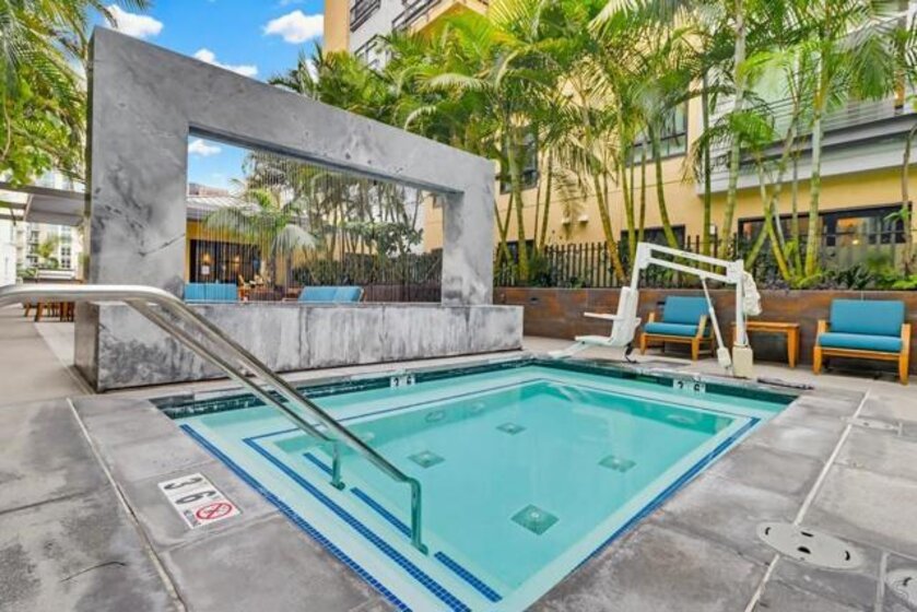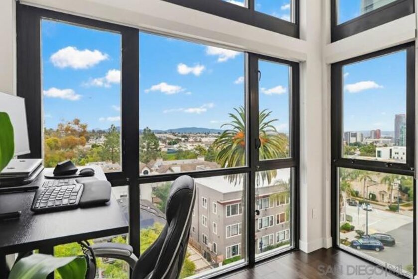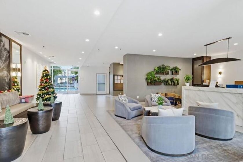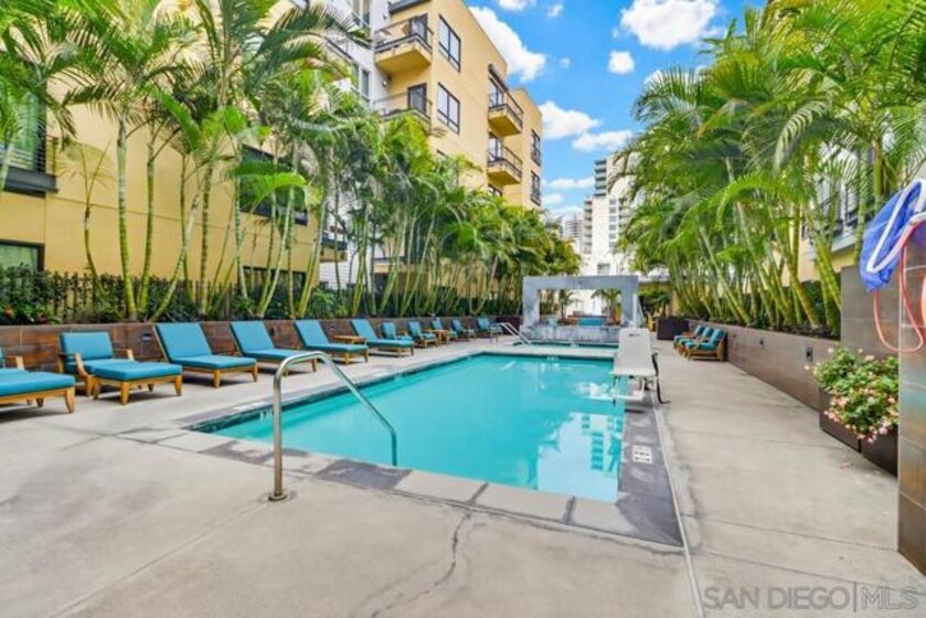 TOP FLOOR UNIT WITH BEST FLOOR PLAN IN COMPLEX! Downtown living at its finest, located in the highly desirable neighborhood of El Cortez. This spacious 1 bd/2bath unit has breathtaking South and East facing views with 20’ floor to ceiling windows, upgraded flooring, washer/dryer in unit, huge walk in closet, and underground assigned parking. Lots of street parking available for guests. Resort style heated pool/spa area with plenty of lounge chairs and seating, fire pit, fitness center and 24hr front desk personnel, onsite security, landscaping & park with playground